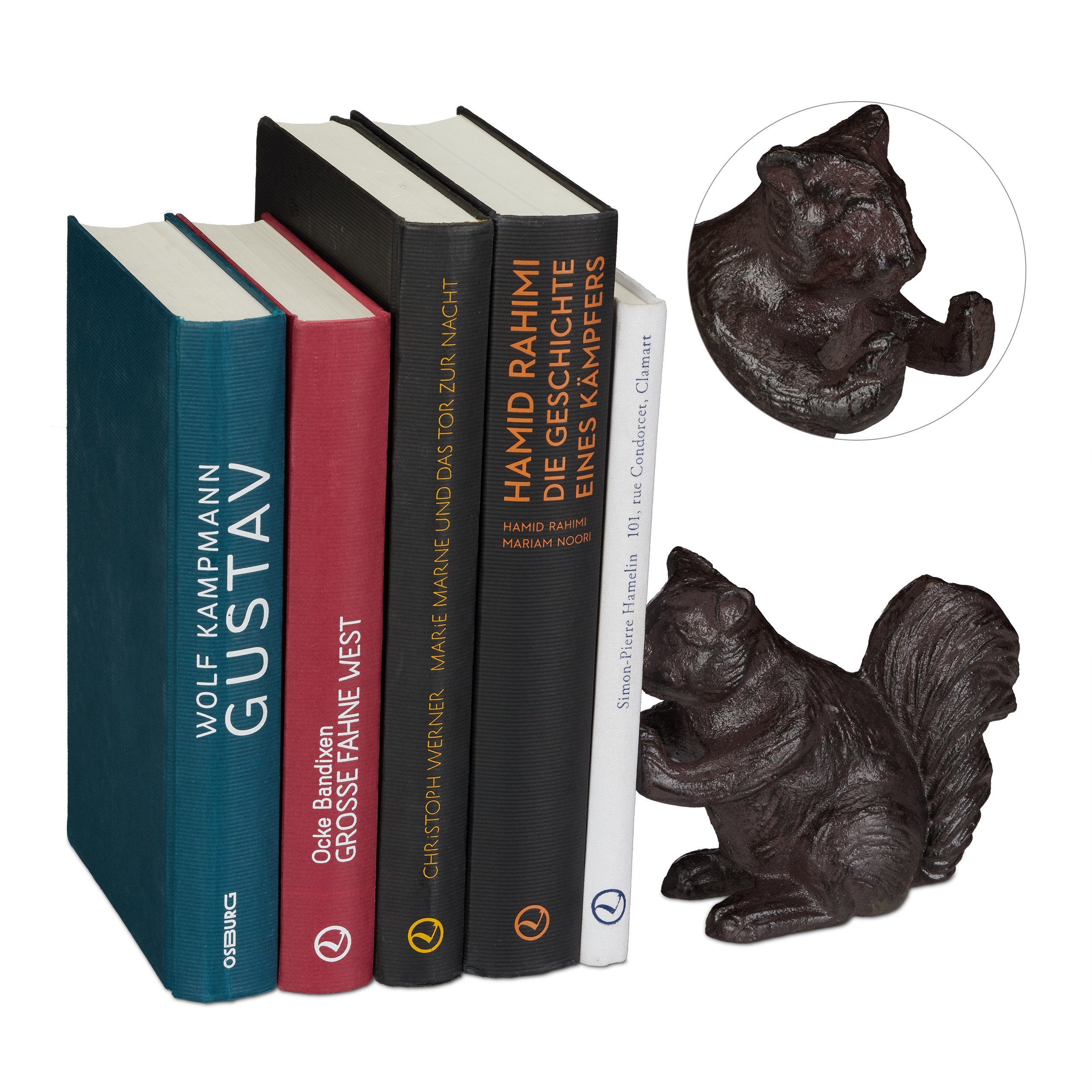 Lieferumfang - 6x Buchstütze Eichhörnchen - Dekoartikel sind nicht im Lieferumfang enthalten