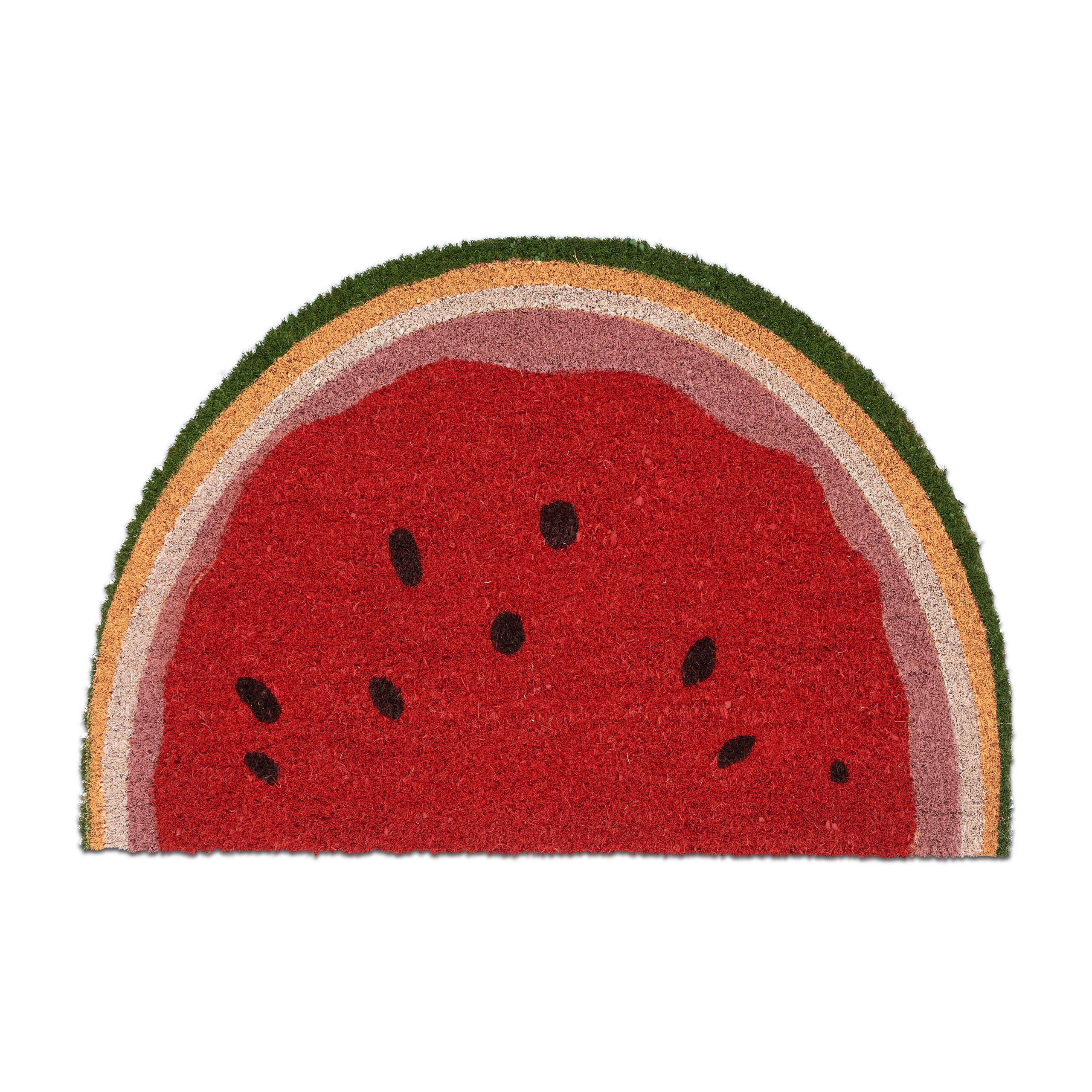 Rutschfester Türvorleger für zu Hause - Schmutzfangmatte für den Innen- und Außenbereich - Türabtreter hält Schmutz von Innenräumen fern - Aus robusten und wasserfesten Kokosfasern - Unterseite mit rutschhemmender PVC-Schicht - Im farbenfrohen Wassermelonen-Design in halbrunder Form