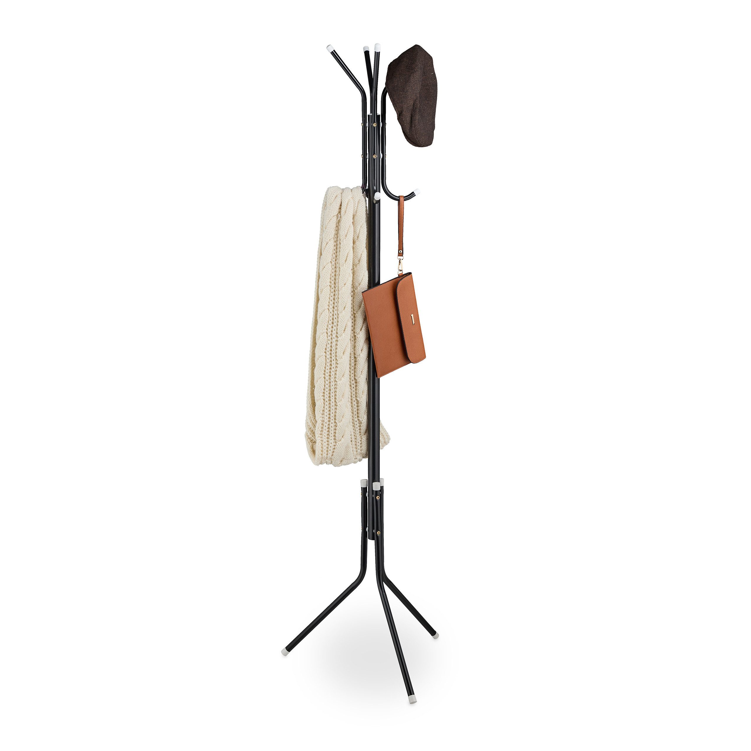 Standgarderobe für Flur und Büro - 8 Haken für Jacken, Mäntel, Hüte, Taschen uvm. - 3 schräge Standbeine sorgen für einen stabilen Stand - Freistehend und individuell platzierbar im Flur, Büro etc. - Klassische Form in glänzend schwarzem Design - Schneller Aufbau - Einfach zusammenschrauben