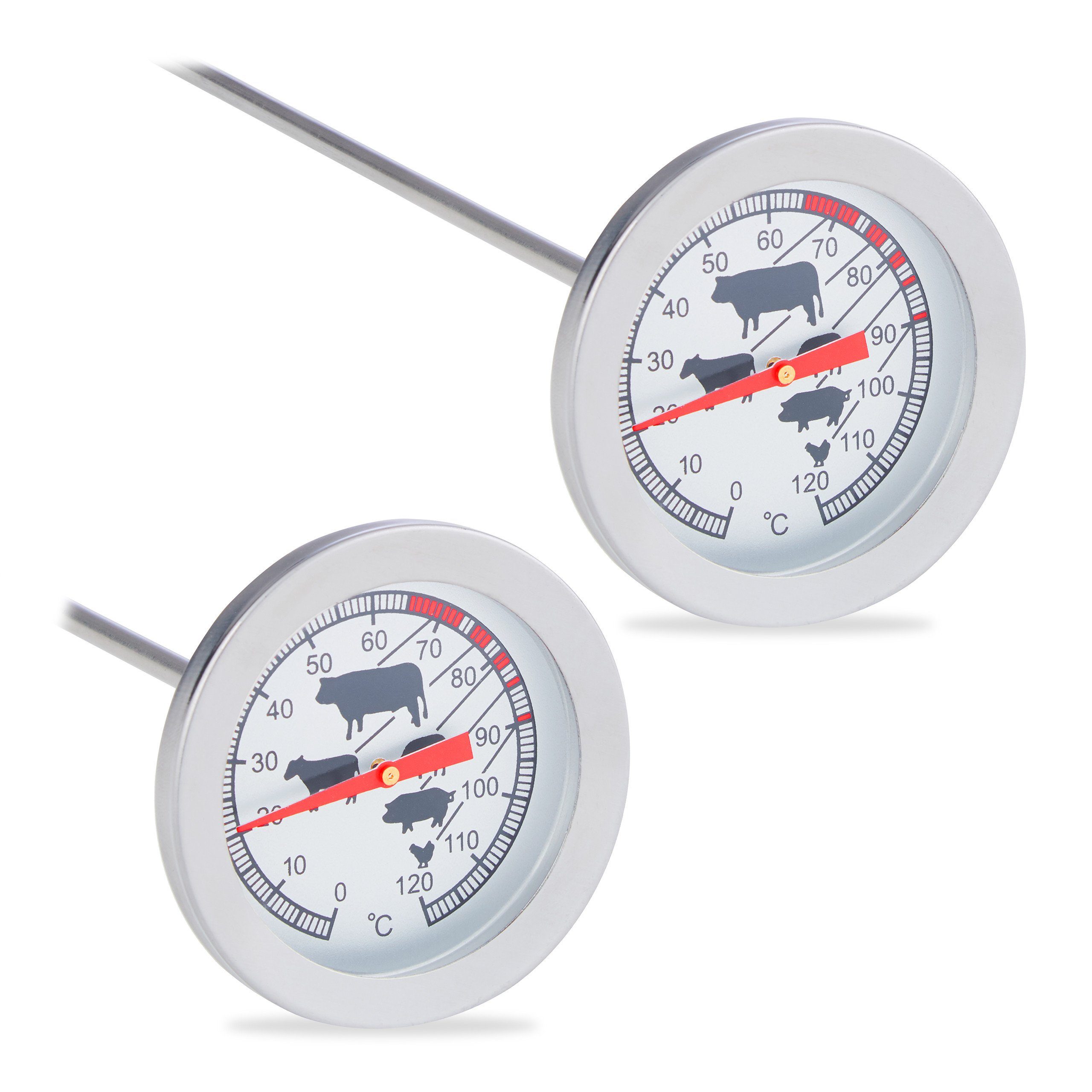 Garen Sie Ihre Speisen auf den Punkt mit dem analogen Einstichthermometer für Fleisch aller Art. Ob Sie einen Sonntagsbraten garen oder ein Steak grillen, das Fleischthermometer verrät Ihnen die genaue Kerntemperatur und gewährleistet somit ein sicheres Lebensmittel frei von Bakterien. Die leicht abzulesende Anzeige zeigt zur Orientierung die Garpunkte verschiedener Fleischarten. Das hitzebeständige Bratenthermometer kann während der gesamten Garzeit im Ofen verbleiben. Das Grillthermometer aus Edelstahl ist hygienisch und nach der Nutzung einfach mit einem feuchten Schwamm zu reinigen.