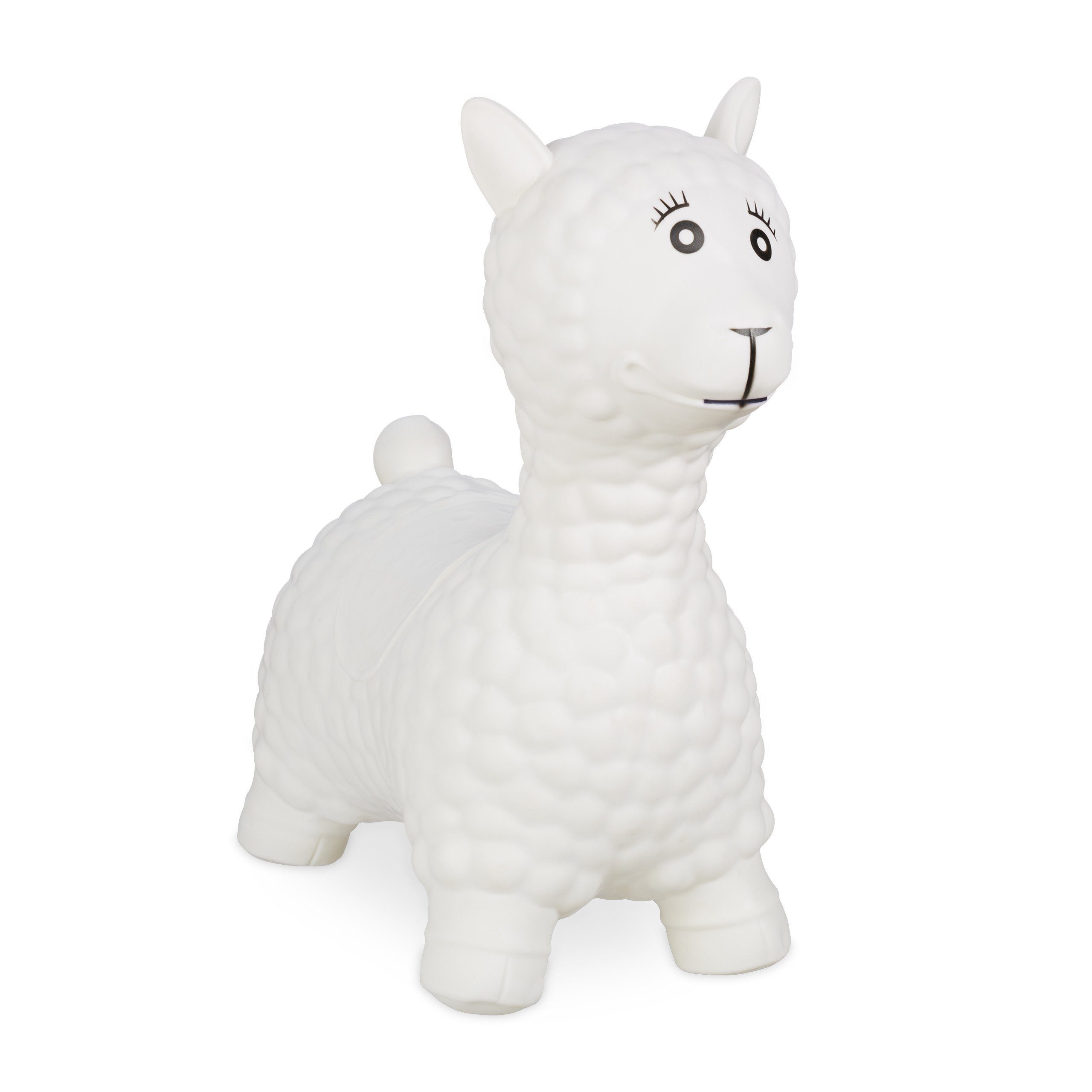 Kaum etwas verbindet Spaß und Bewegung besser als der Klassiker unter den Kinderspielsachen: Das Hüpftier. Dieses niedliche Lama lädt Kinder ab 3 Jahren zum Hüpfen ein und kommt so dem natürlichen Bewegungsdrang kleiner Kinder nach. Auch der Gleichgewichtssinn wird beim wilden Herumhüpfen trainiert. Die kindgerechte Sitzhöhe und die langen Ohren zum Festhalten sorgen dabei für einen sicheren Ritt. Dank der mitgelieferten Luftpumpe ist das BPA-freie Springtier schnell einsatzbereit