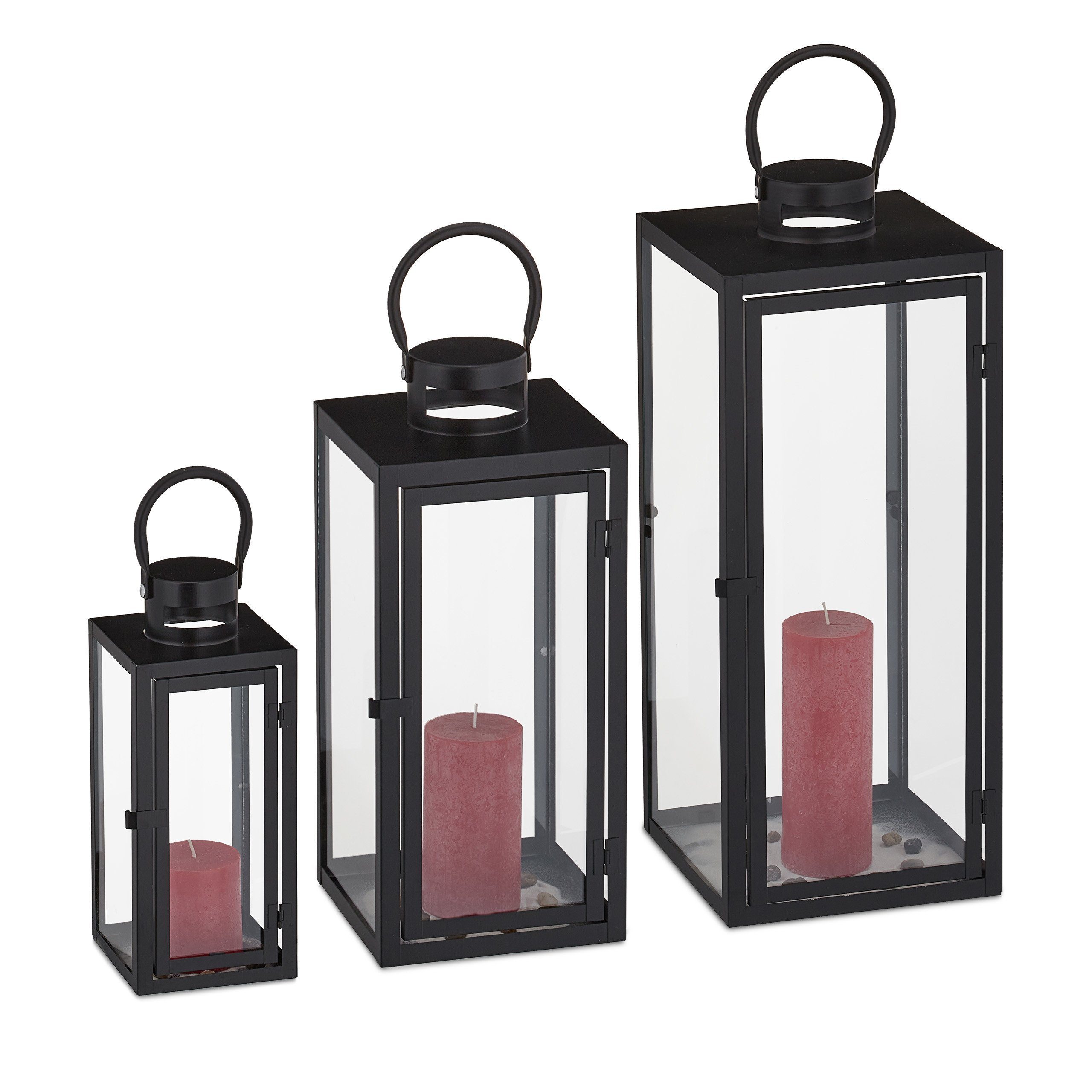 3er Set: Drei Laternen unterschiedlicher Размер aus Metall und Glas - Mit Kerzen, Deko uvm. bestücken