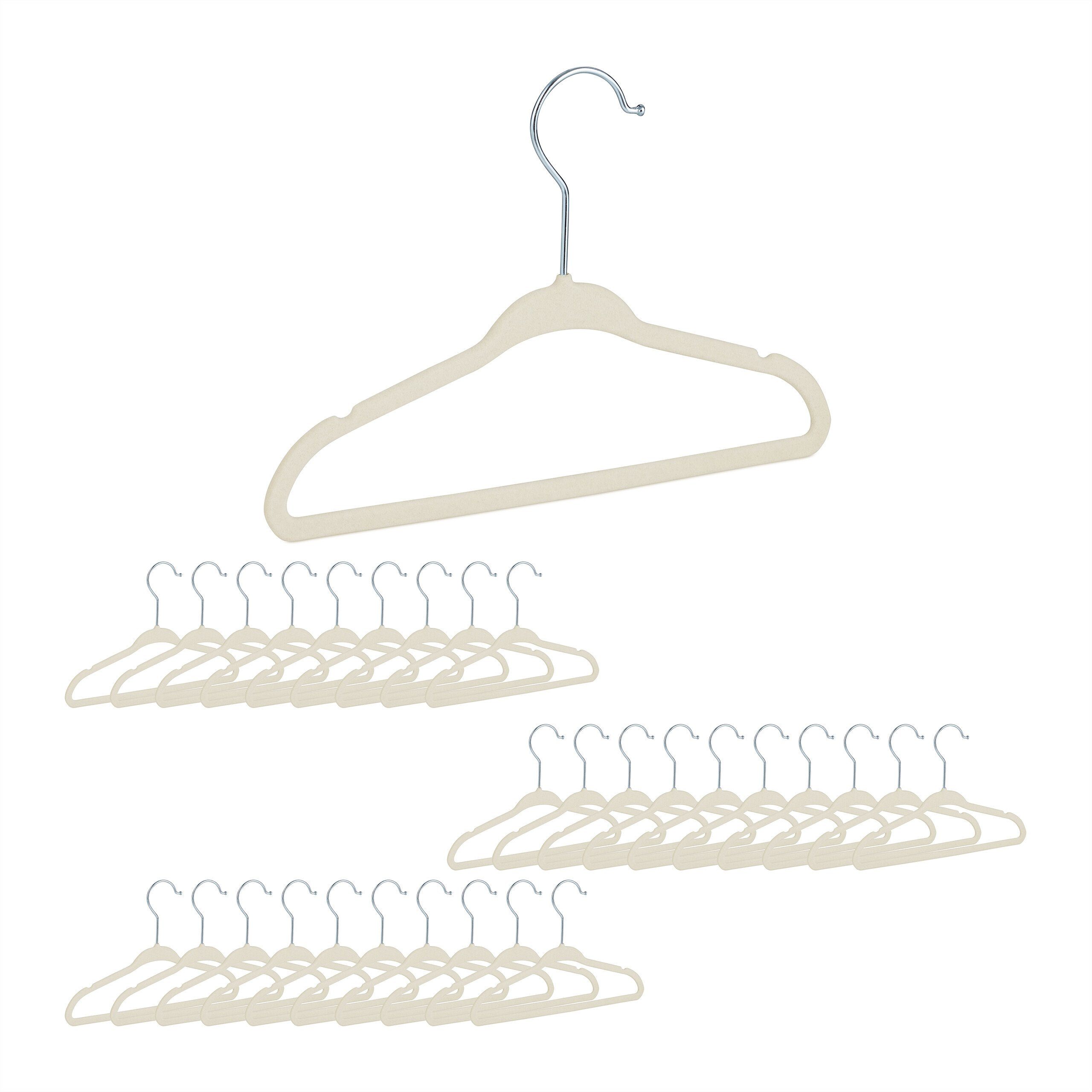 Diese Samtbügel haben genau die richtige Размер für Baby- und Kinderkleidung. Sorge mit den Kleiderbügeln für eine einheitliche Optik im Kleiderschrank Deiner Kleinen. Hosen hängst Du einfach über den Steg. Die Kerben verhindern, dass Hemden, Kleidchen oder Tops mit dünnen Trägern vom Bügel rutschen. Der angenehm weiche Samtbezug trägt zu dieser Anti-Rutsch-Wirkung ebenso bei. Die Kinderkleiderbügel sind mit 360 Grad drehbaren Haken ausgestattet, die eine flexible Nutzung ermöglichen.