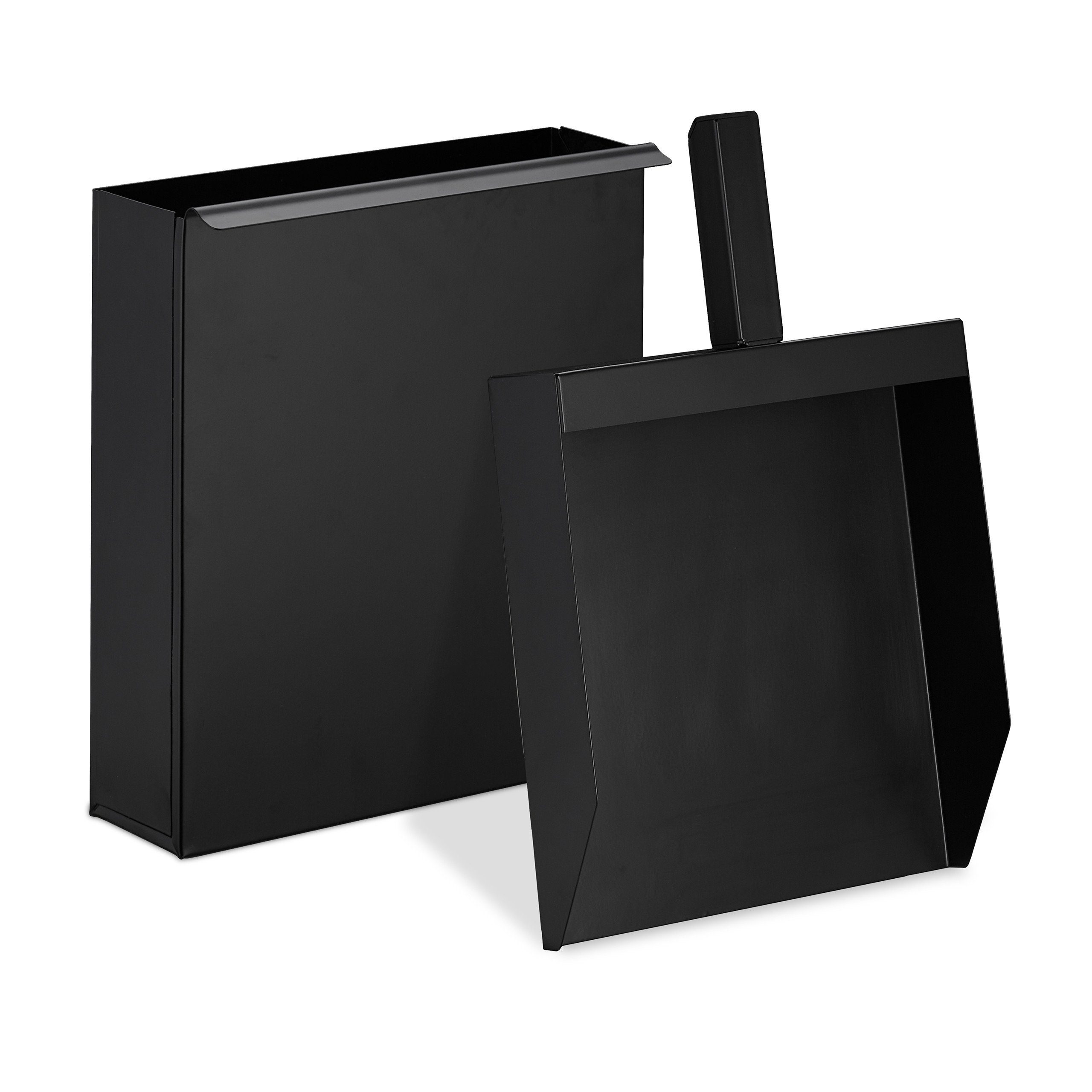 Eckiger Aschekübel - Einschub umschließt die Schaufel und schützt vor Verwehung - Dank eckigem Design auch problemlos im Auto zu transportieren - Mit Griffleiste für einen einfachen Transport - Kohleschaufel mit Griff für leichtes Entleeren des Behälters - Flaches, platzsparendes Design passt in jede Ecke
