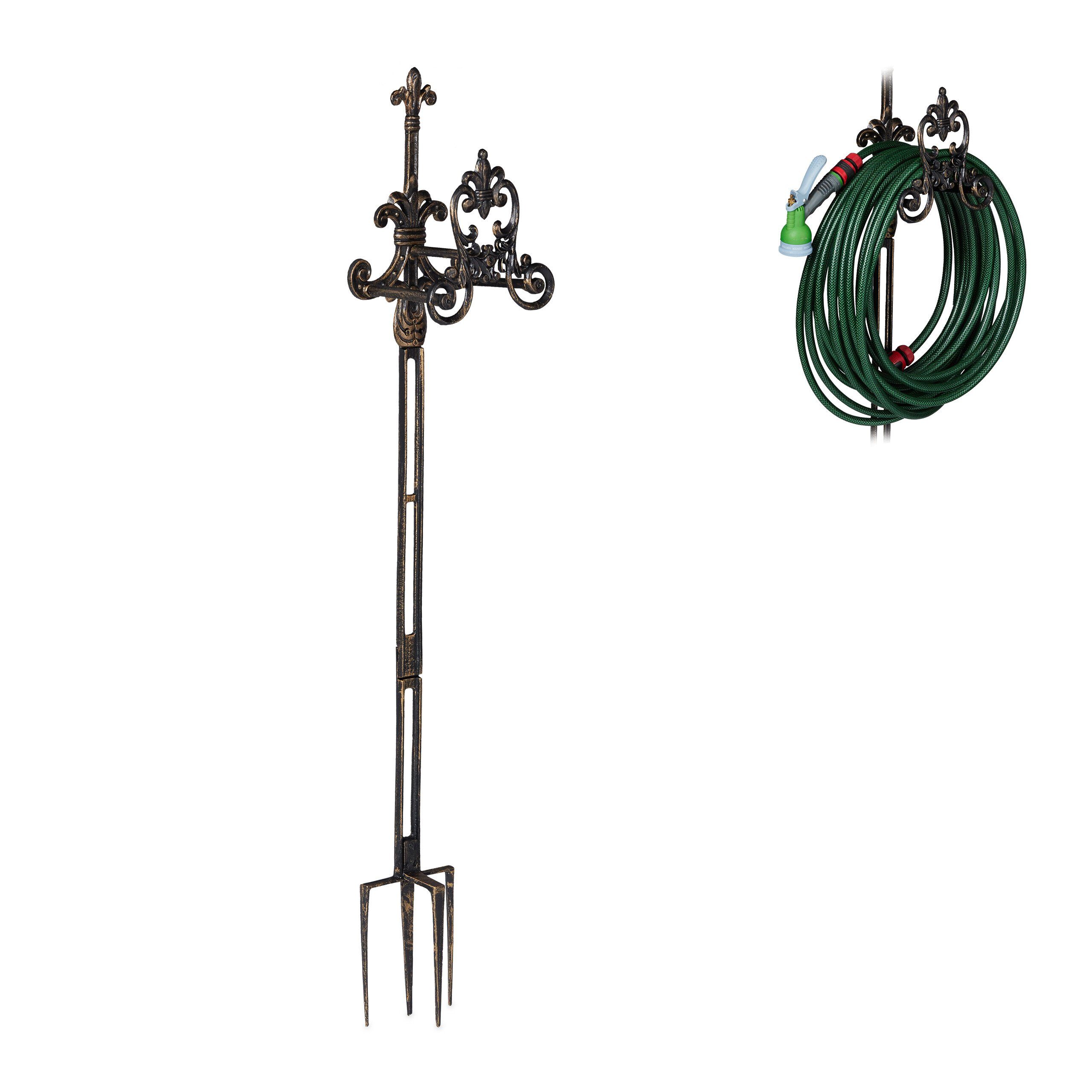 Dieser Schlauchhalter ist ein praktischer Helfer in Ihrem Garten. Durch die schmale und lange Form ist der Schlauch platzsparend und günstig aufbewahrt. Die gebogene Oberfläche sorgt dafür, dass der Schlauch nicht abknickt und ist somit stets einsatzbereit. Der nostalgische Look mit Ornamenten aus massivem Gusseisen passt ideal in ein träumerisches Gartenreich und ist ein absoluter Hingucker. Dank der Erdspieße lässt sich der Schlauchständer einfach und schnell im Garten aufstellen.