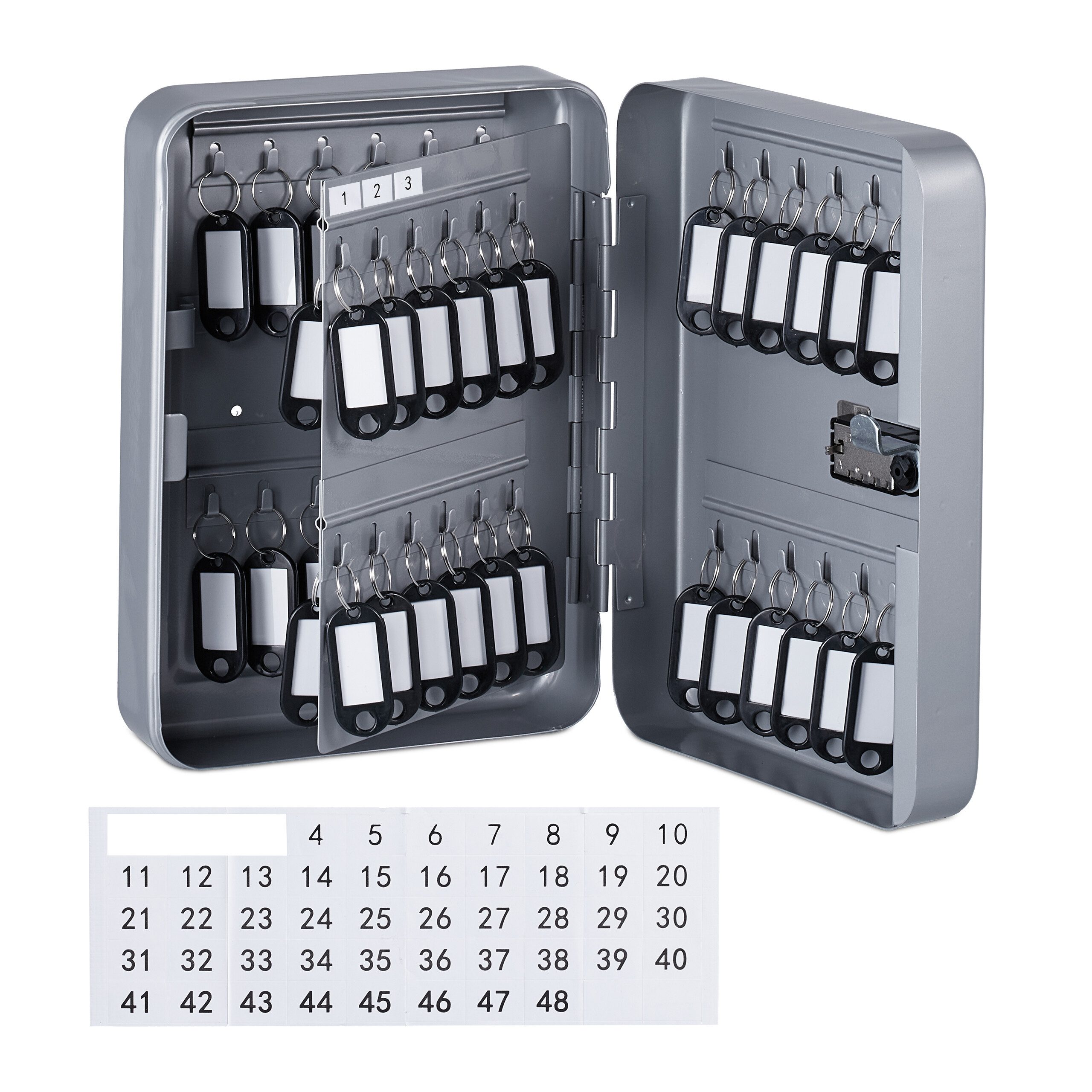 Details: Schlüsselsafe mit 48 Haken an 8 Leisten - HxBxT: ca. 25 x 18 x 7,5 cm - In glänzendem Grau