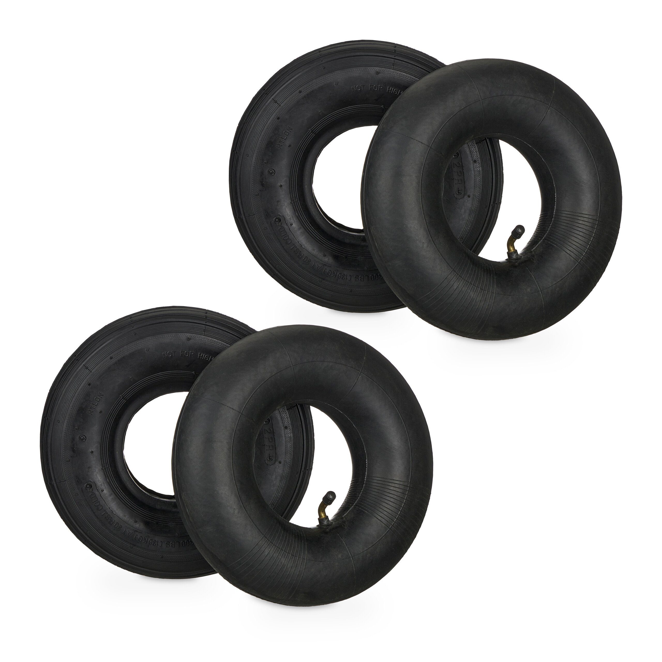 Luftbereifte Ersatzreifen mit Schlauch - Innenschlauch mit Autoventil für einfaches Aufpumpen - Profilierte Lauffläche für leichtgängiges Fahren - Ersatz Set mit 2x Reifenmantel und -schlauch - Im Falle eines Platten, Reifen direkt parat haben - Zubehör für Schubkarre, Bollerwagen und mehr