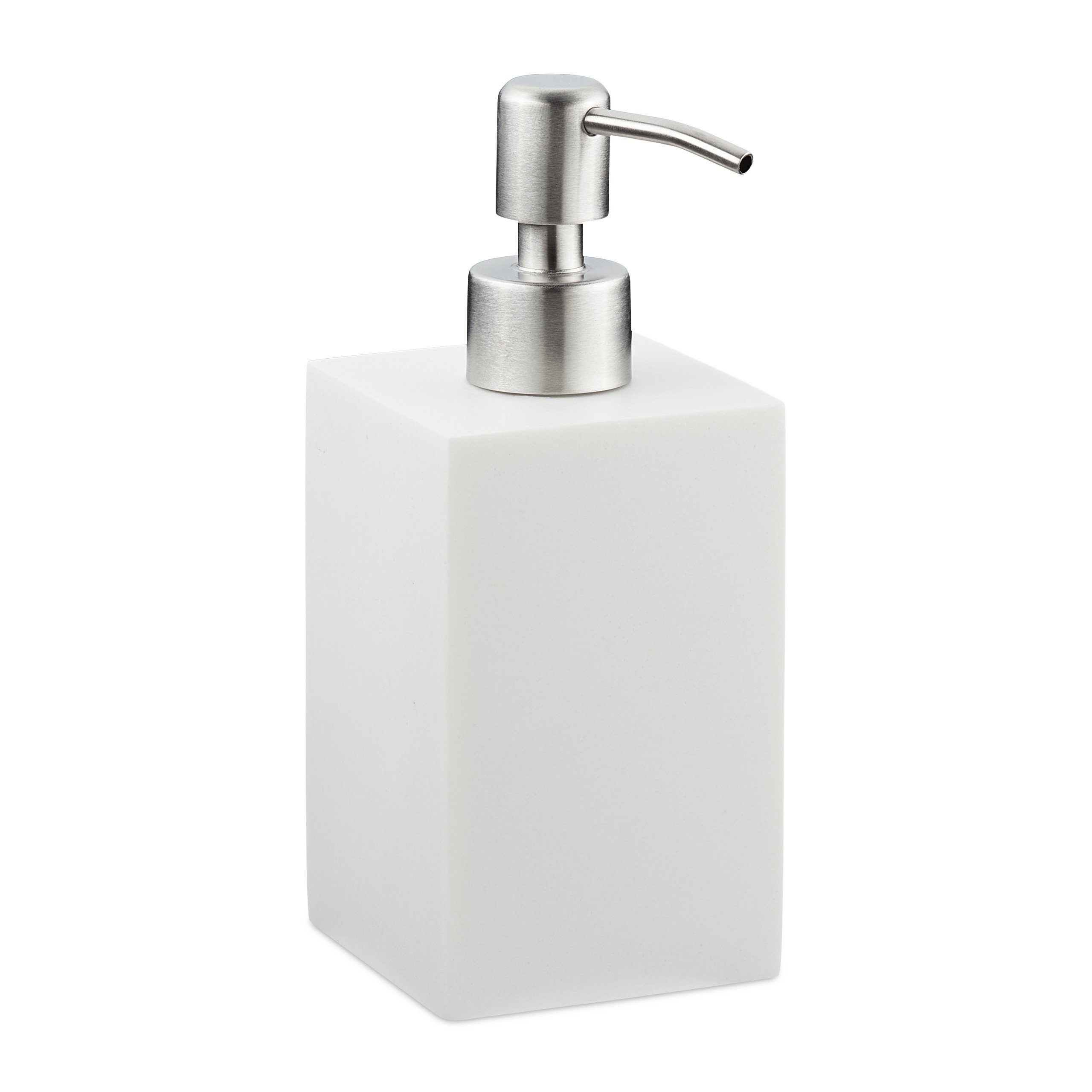 Der eckige Seifenspender im 2er Set ist nicht nur dekorativ, sondern auch vielseitig einsetzbar. Ob Seife, Lotion, Duschgel, Shampoo oder auch Spülmittel - mit dem Pumpspender lassen sie sich optimal dosieren. Falls der Seifendispenser einmal leer sein sollte, lässt er sich durch Abschrauben der Pumpvorrichtung einfach neu befüllen. Das edle Design aus glatten Kunststein und einem Pumpkopf aus Edelstahl macht den Handseifenspender zu einem eleganten Accessoire für Bad, WC und Küche. Farbe: weiß