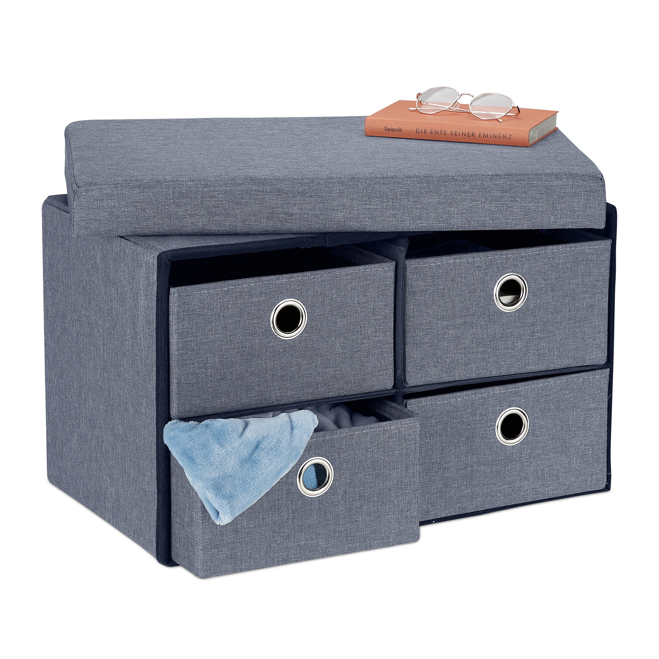 Diese Faltbank vereint Aufbewahrungsmöglichkeit und Sitzgelegenheit in einem und ist ein wahres Multitalent für Wohn- und Schlafzimmer, Flur oder Ankleidezimmer. Mit ihren 4 Schubfächern bietet die Stofftruhe praktischen Stauraum für Kleidungsstücke wie Schals, Mützen und Handschuhe, aber auch Spielzeug kann darin wunderbar untergebracht werden. Durch den gepolsterten Deckel lässt es sich auf der Banktruhe bequem sitzen. Bei Nichtgebrauch ist die Bettbank schnell zusammengefaltet und verstaut.