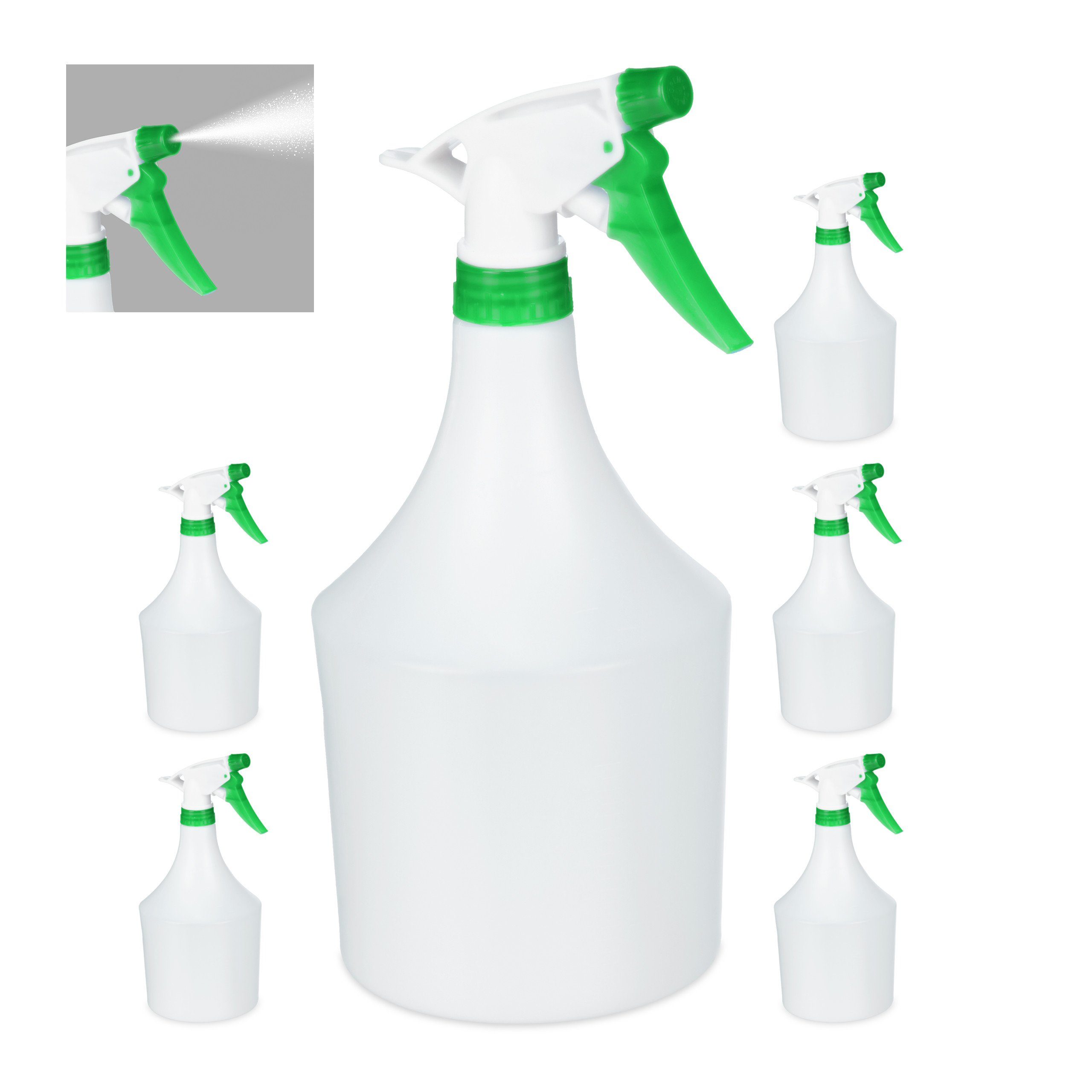 Das 6er Set Handsprühflaschen hilft Ihnen auf vielfältige Weise im Garten oder im Haushalt. Mit der Sprühnebelflasche können Sie die Blätter Ihrer Pflanzen bewässern und ihnen helfen, einen trockenen Sommer zu überstehen. Auch für das Sprühen von Schädlingsbekämpfungs- oder Putzmitteln lässt sich die Wassersprühflasche verwenden. Die Sprühstärke können Sie mithilfe der einstellbaren Düse selbst festlegen. Die Handsprüher sind aus Kunststoff gefertigt und fassen je ca. 1 Liter Flüssigkeit.