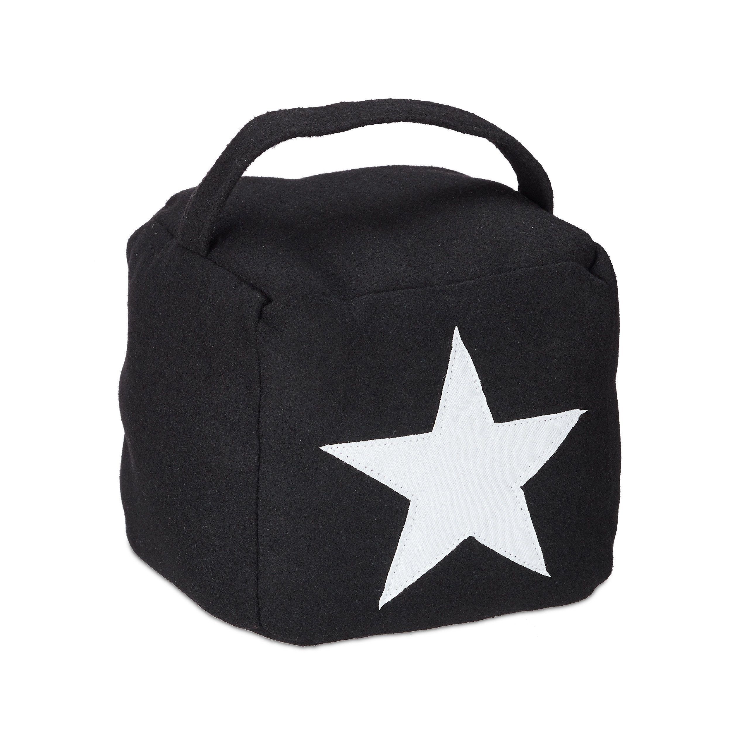 Der quadratische Türstopper aus Stoff überzeugt durch sein modernes Design mit einem dekorativen Stern auf der Vorderseite. Der Türpuffer muss nicht am Boden oder der Wand befestigt werden und kann durch den praktischen Griff einfach angehoben und jederzeit flexibel neu platziert werden.
