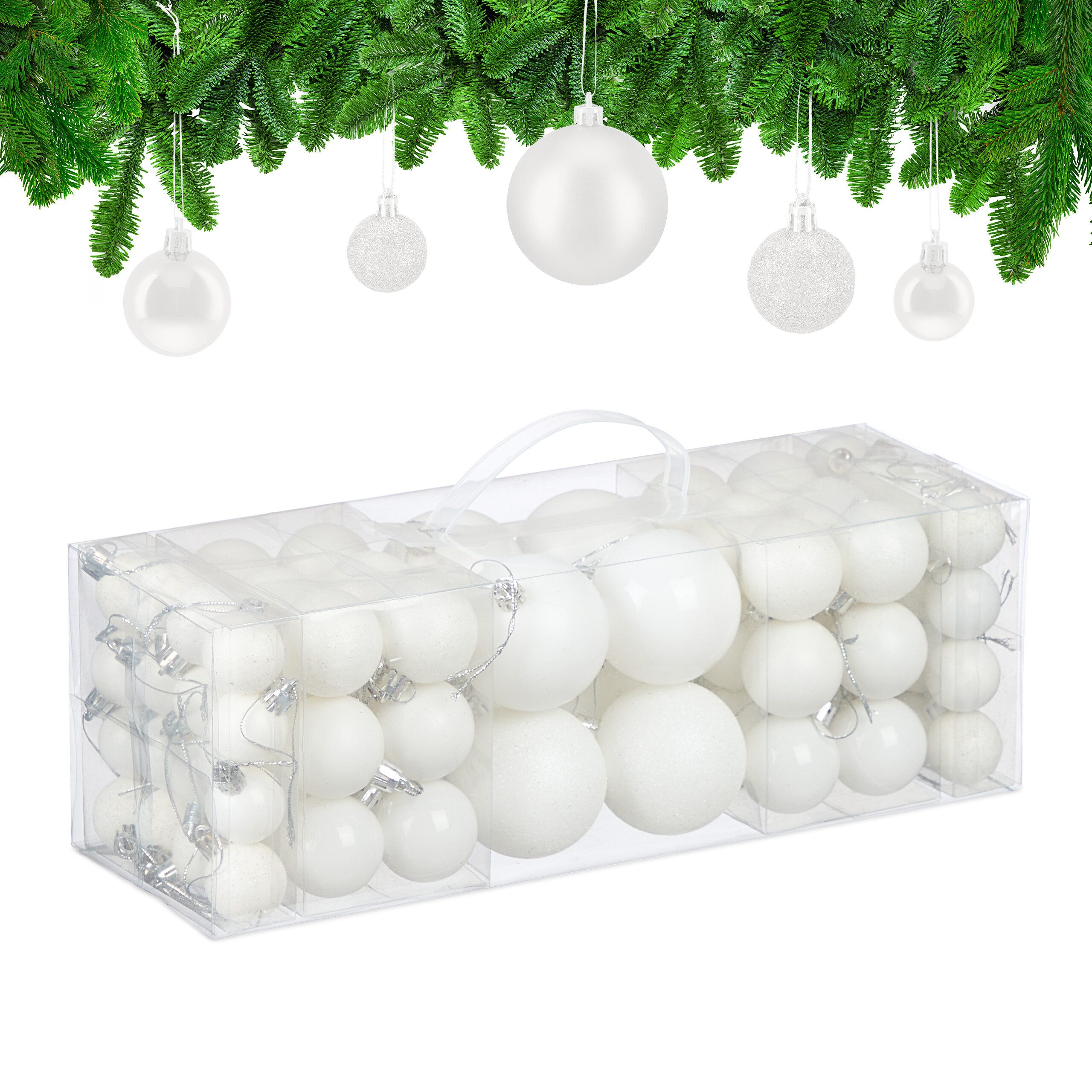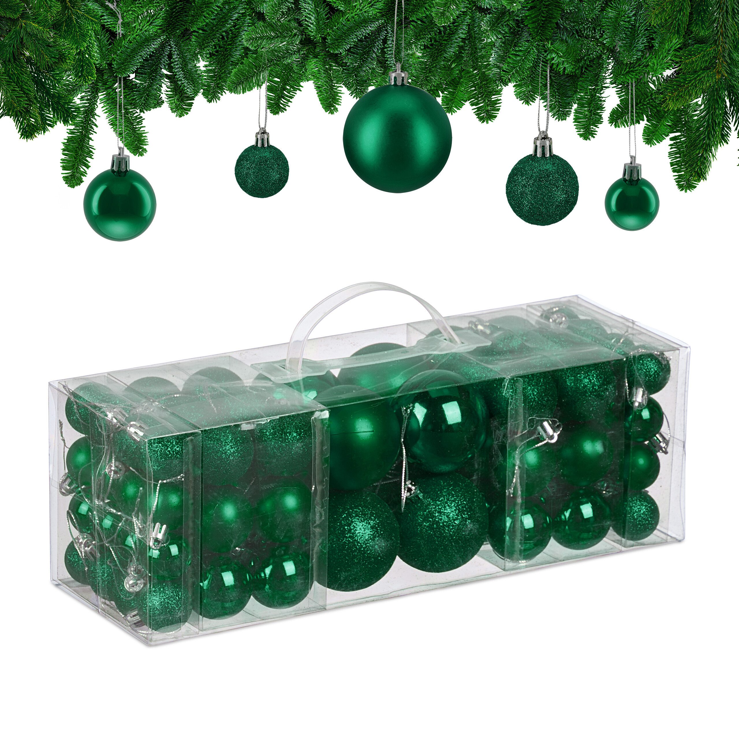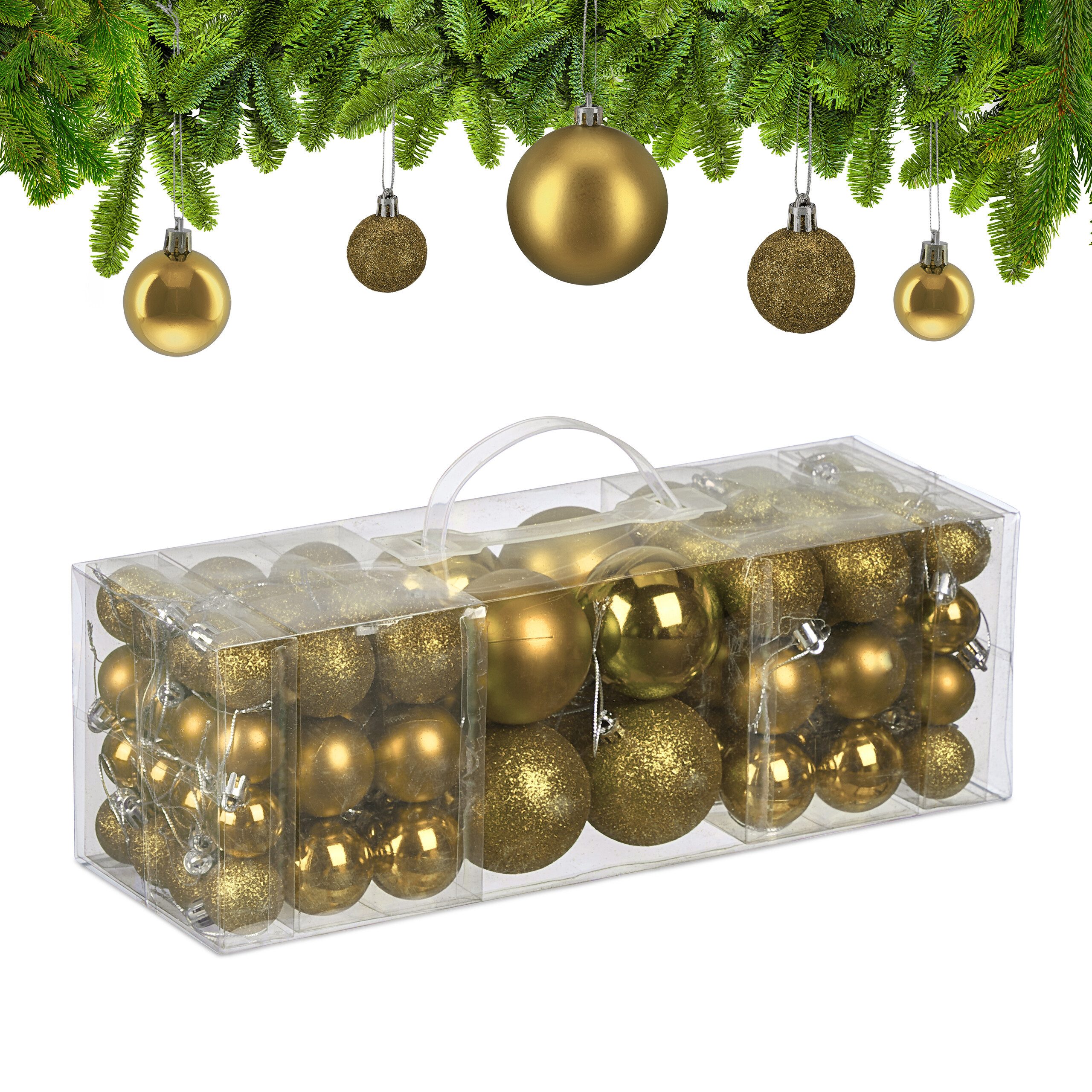 Christbaumschmuck im 76er Set - Weihnachtsbaum mit den Tannenkugeln festlich schmücken - Christbaumdeko mit Bändchen zum einfachen Aufhängen - Baumkugeln in glitzerndem, mattem und glänzendem Design - Glänzende Kugeln reflektieren das Licht für behaglichen Glanz - Langlebiger Baumschmuck aus bruchsicherem Kunststoff - Dekorative Weihnachtsbaumdeko für ein besinnliches Fest - Inklusive praktischer Aufbewahrungsbox zum Verstauen