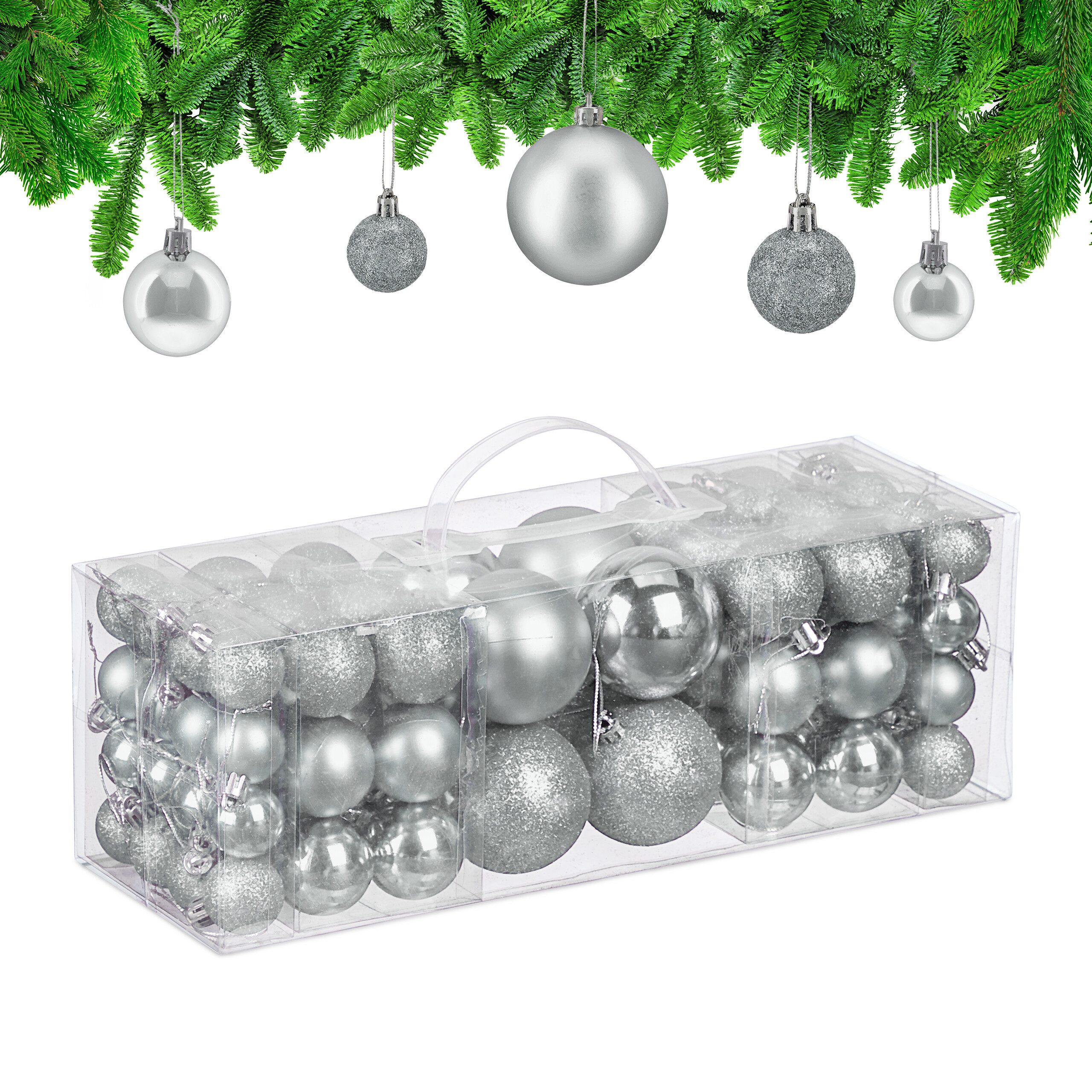 Mit dem großen Christbaumkugel-Set lässt Du Deinen Tannenbaum in weihnachtlichem Glanz erstrahlen. Das Set enthält Weihnachtsbaumschmuck in matter, glänzender oder glitzernder Oberfläche und lässt sich an den Bändchen leicht aufhängen. Der festlich dekorierte Weihnachtsbaum bringt dann nicht nur Kinderaugen zum Strahlen, sondern sorgt auch bei Erwachsenen für eine besinnliche Atmosphäre zur schönsten Zeit des Jahres.