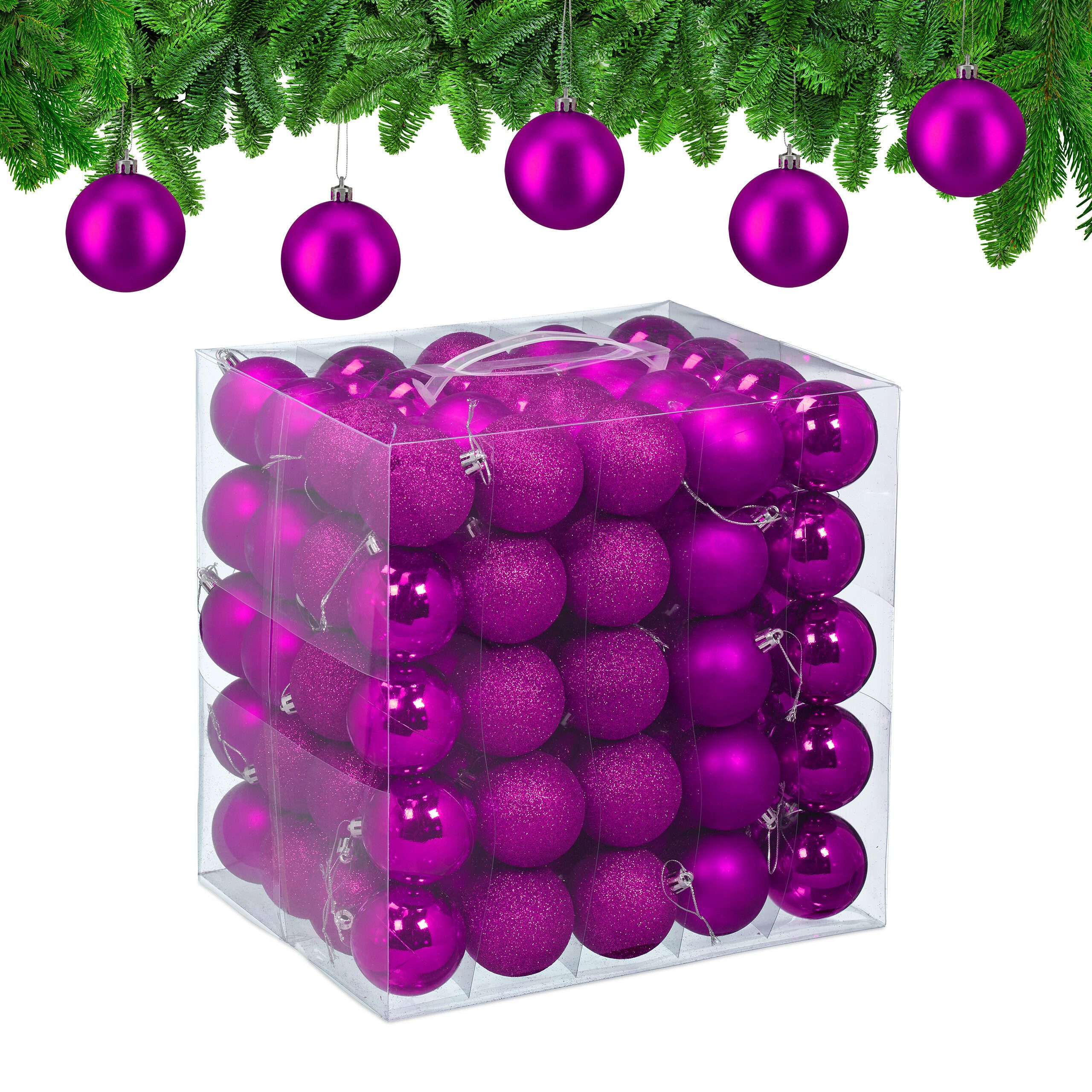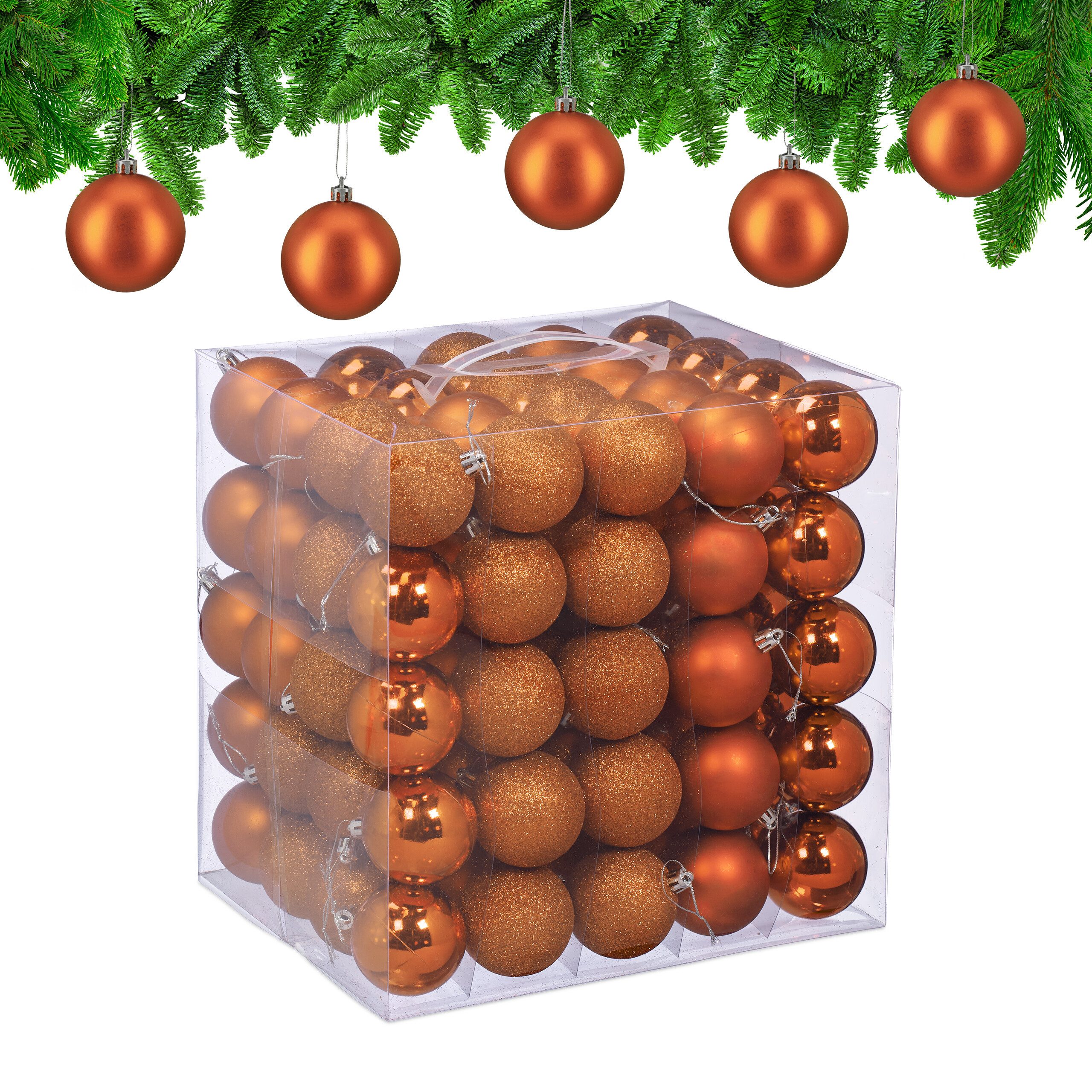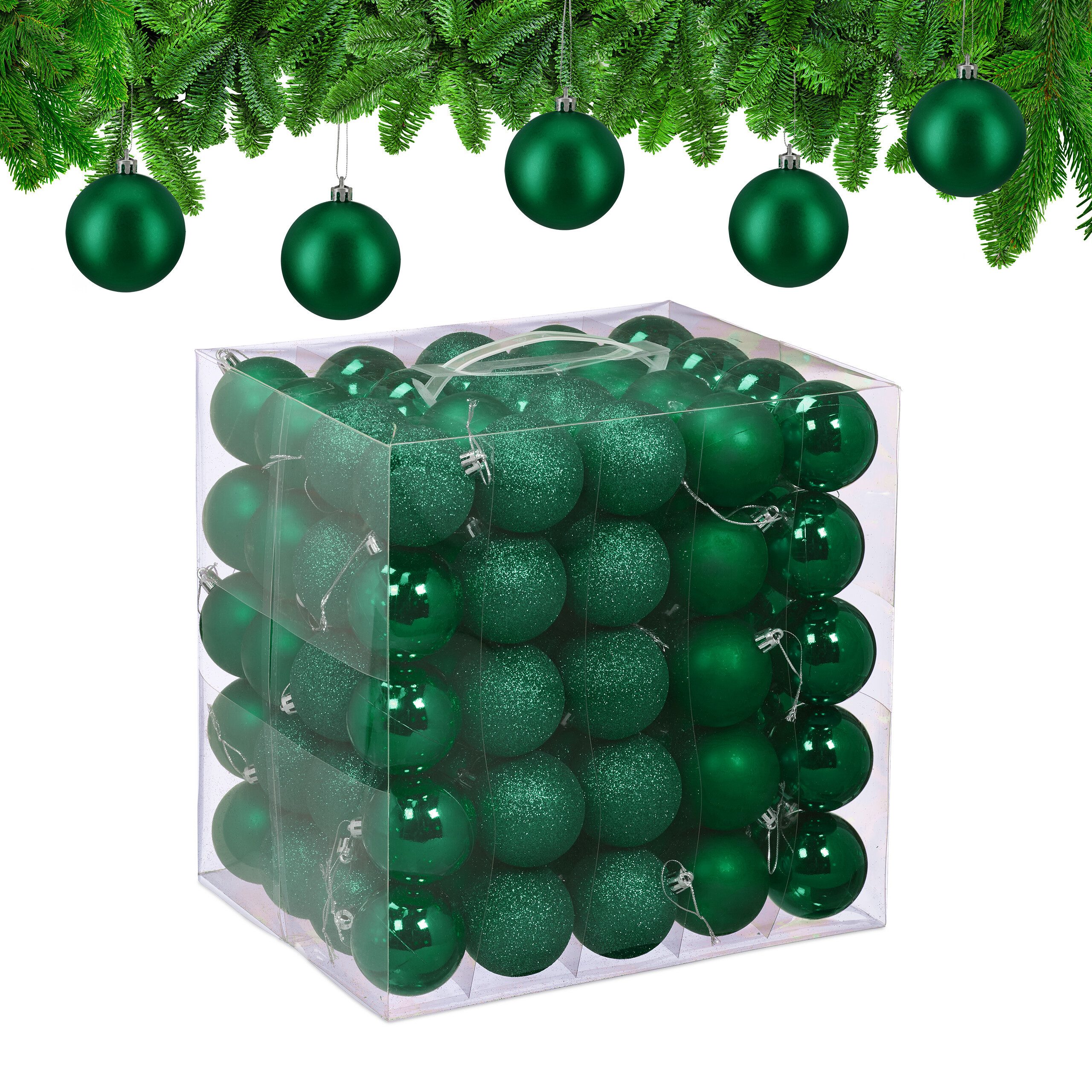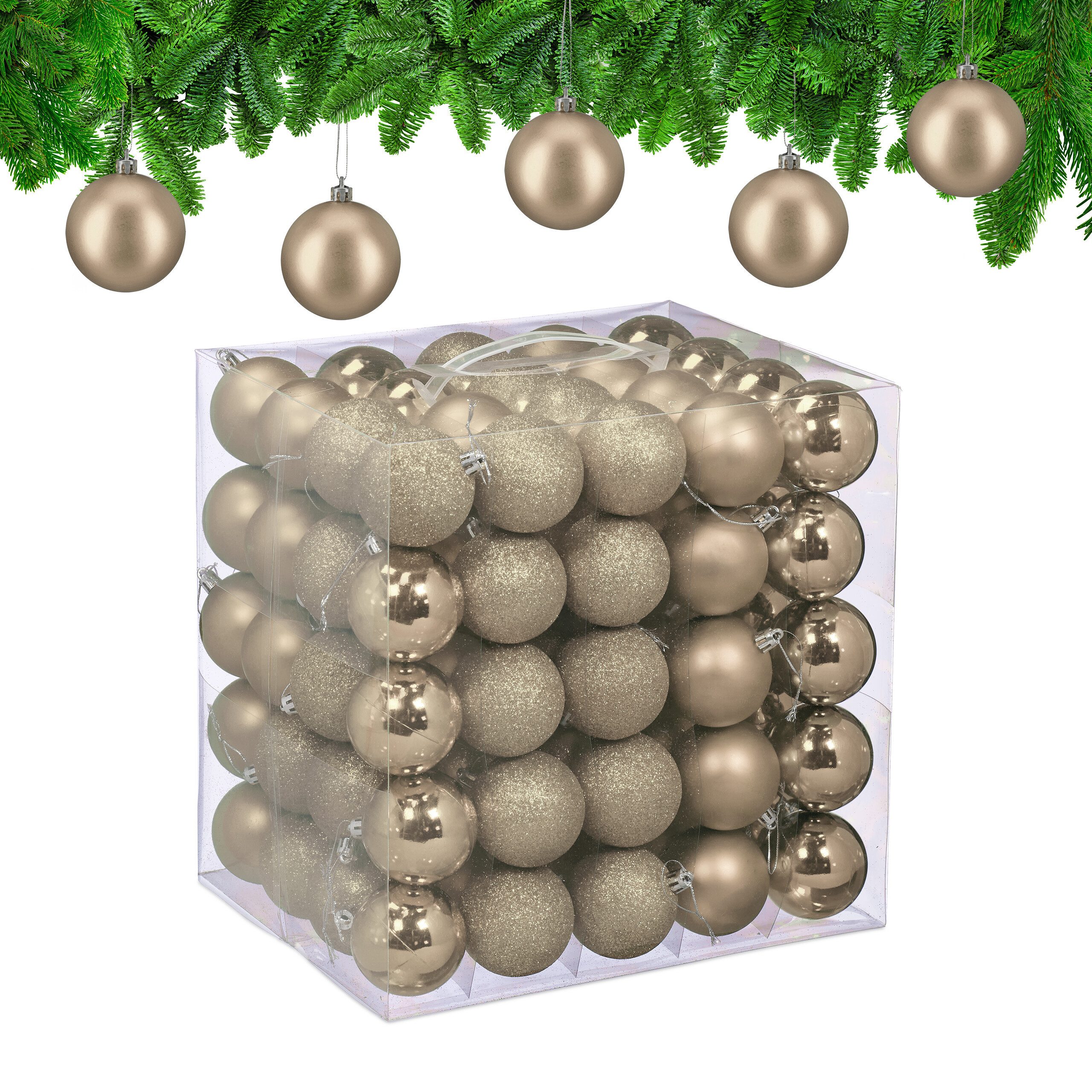Christbaumschmuck im 100er Set - Weihnachtsbaum festlich mit Kugeln schmücken - Baumkugeln mit Bändchen zum einfachen Aufhängen - Kugeln in glitzerndem, mattem und glänzendem Design - Aus bruchsicherem und leichtem Kunststoff - Dekorativer Baumschmuck für ein stimmungsvolles Fest - Inklusive praktischer Aufbewahrungsbox mit Henkel