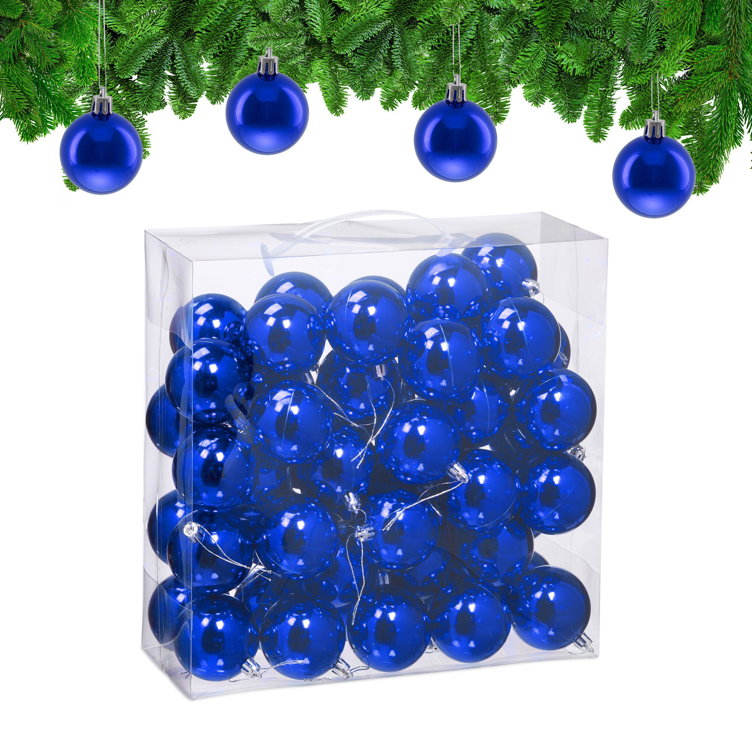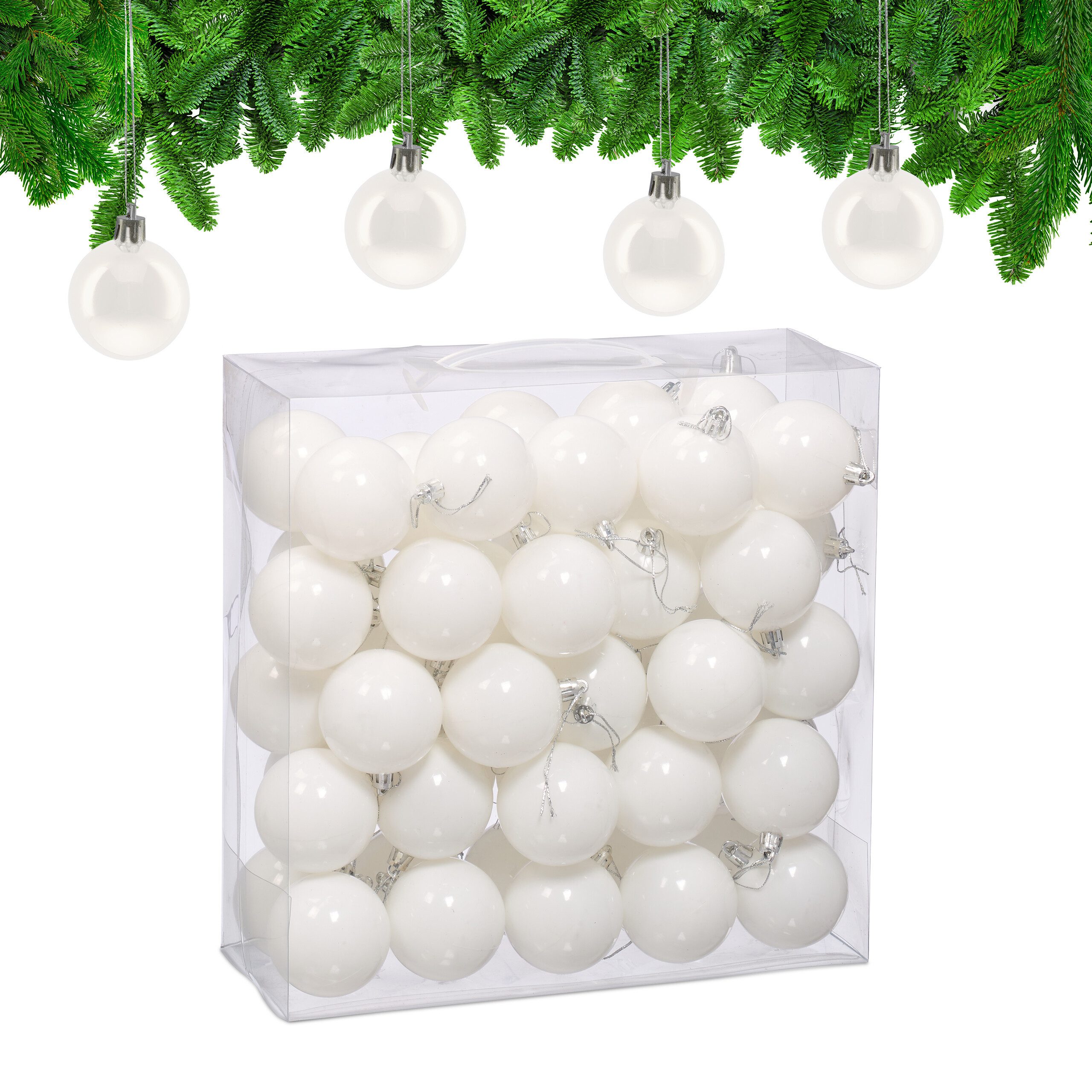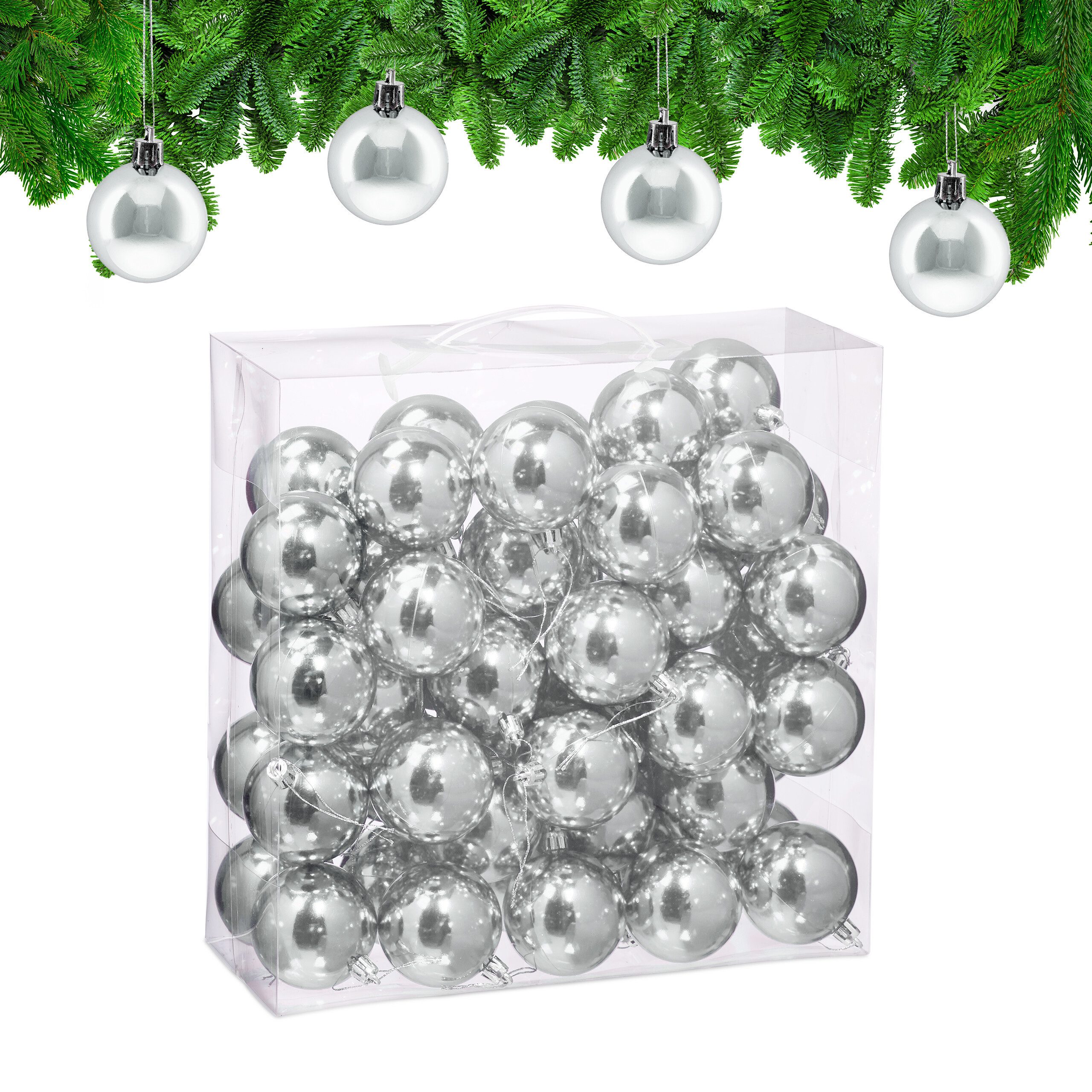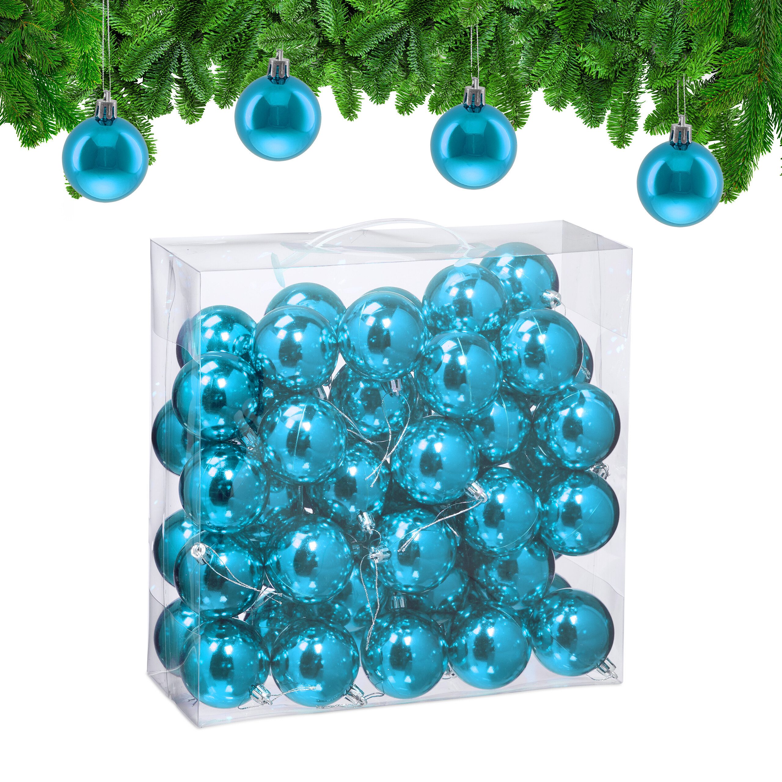 Christbaumschmuck im 50er Set - Weihnachtsbaum festlich mit Kugeln schmücken - Baumkugeln mit Bändchen zum einfachen Aufhängen - Kugeln in glattem, glänzendem Design - Aus bruchsicherem und leichtem Kunststoff - Dekorativer Baumschmuck für ein stimmungsvolles Fest - Inklusive praktischer Aufbewahrungsbox mit Henkel