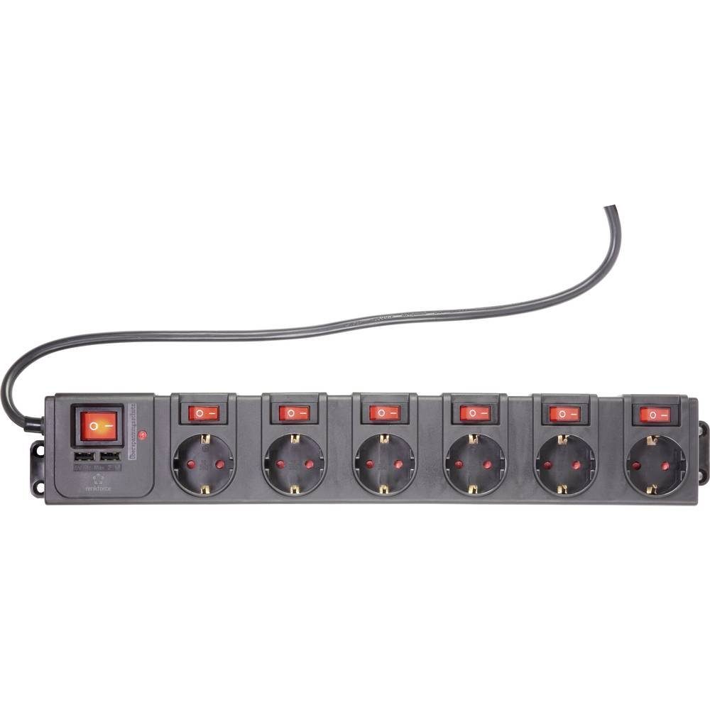 Eigenschaften | Ableitstrom (Details): 9 kA · Anschluss-Leistung (Details): 16 A · Betriebsspannung: 230 V/AC · Einsatzort: Innenbereich · Herstellerfarbe: Schwarz · Kabel-Typ nach DIN/VDE: H05VV-F 3G 1,5 mm² · Kabellänge: 1.50 m · Material: PP · Montageart: Montagelöcher · Netzstecker-Typ: Schutzkontakt · Produktabmessung, Breite: 76 mm · Produktabmessung, Höhe: 44 mm · Produktabmessung, Длина: 460 mm · Schutzart: IP20 · Steckdosen-Anzahl: 6 · Steckdosenleisten-Besonderheiten: erhöhter Berührungsschutz, Überspannungsschutz, einzeln schaltbar, mit USB · Впередe technische Daten: max. 3680W 5V DC, max. 2,1A für das USB-Ladegerät |