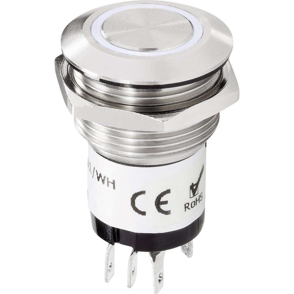 Mit permanent beleuchtetem weißen LED-Ring. Exakt gearbeiteter Klingeltaster aus Edelstahl mit Gummidichtung und Gegenmutter. Völlig unempfindlich gegen Schlagregen und vollkommen staubdicht trotzt er jeglichen Umwelteinflüssen. Der Anschluss ist über 2,8 mm Flachstecker möglich oder fest verlötbar
