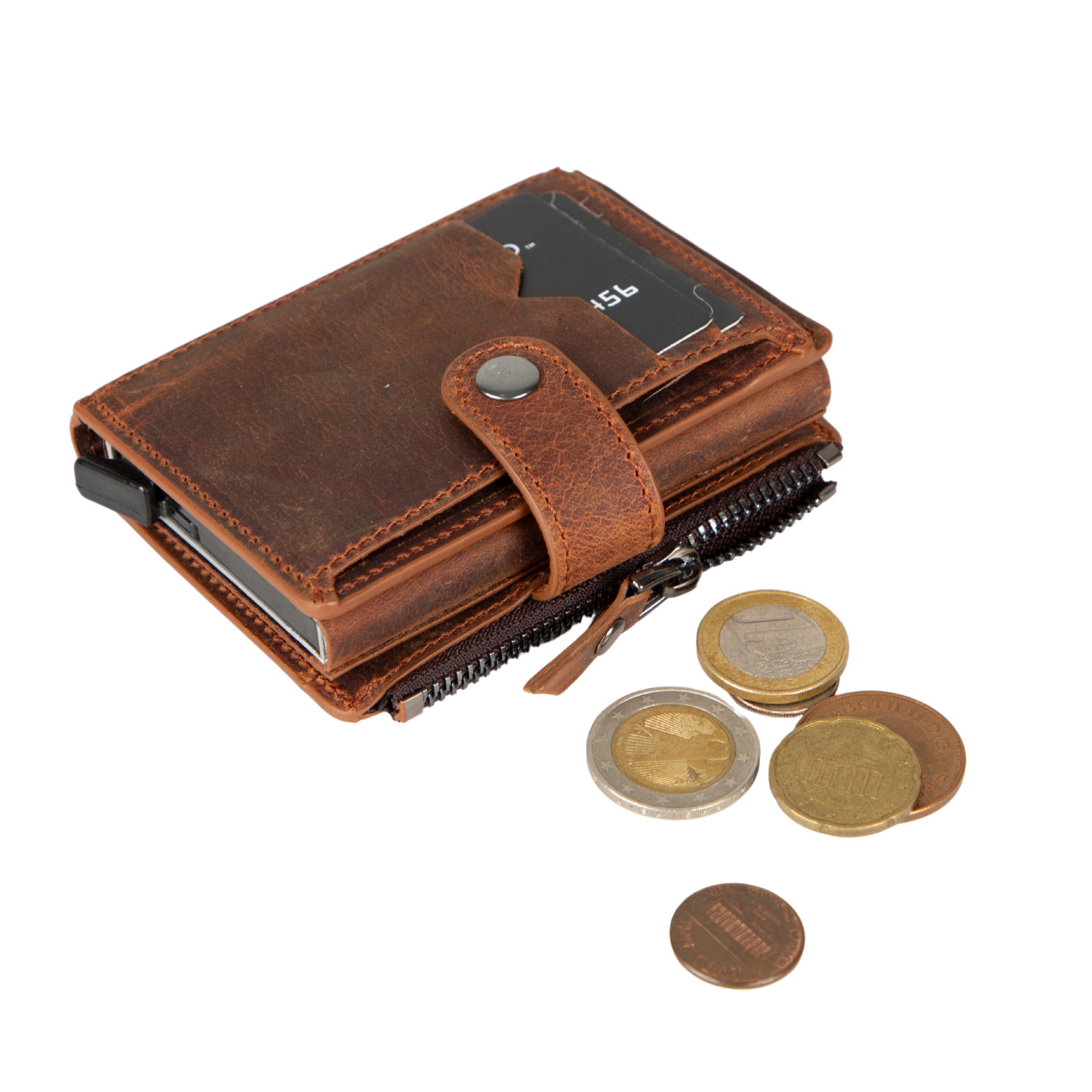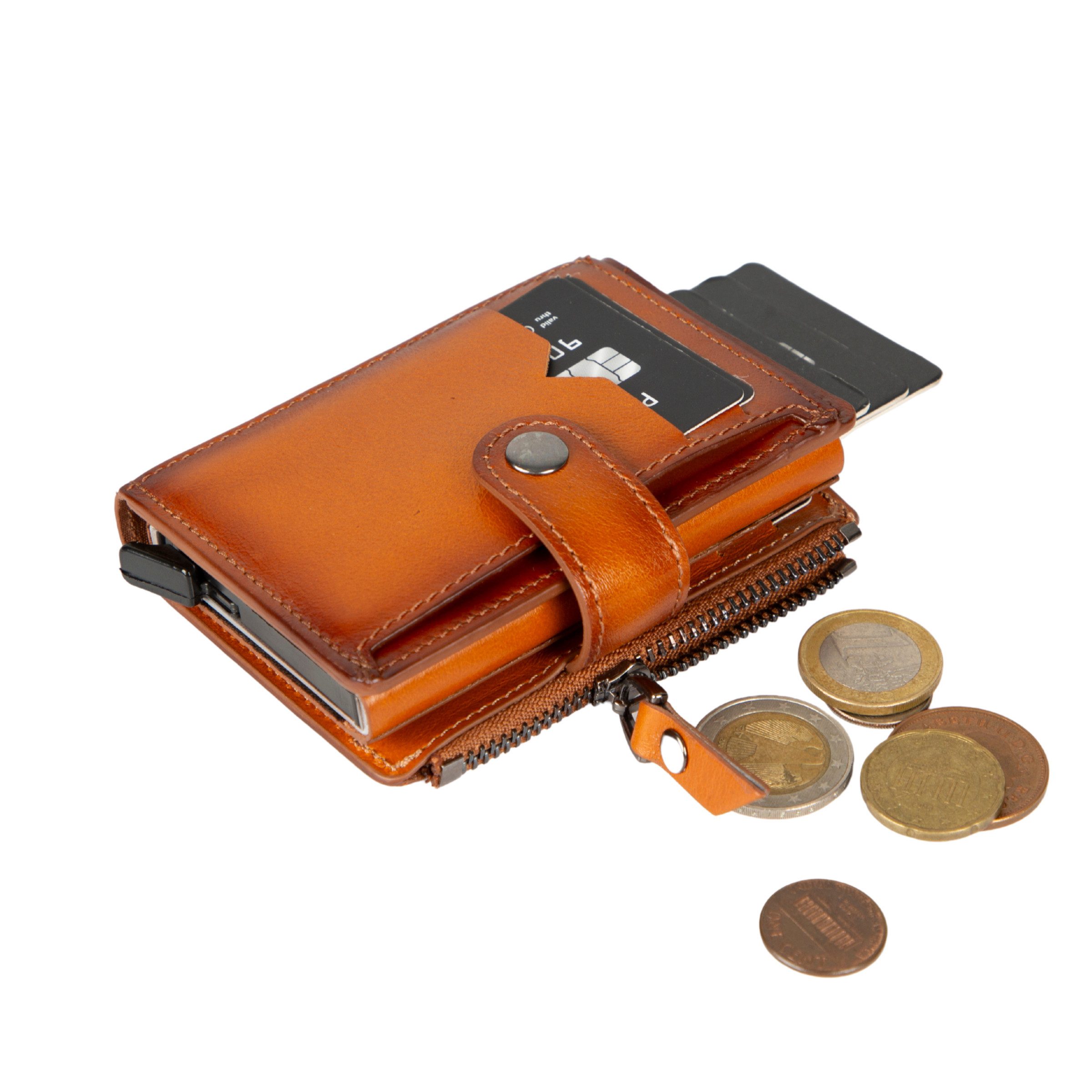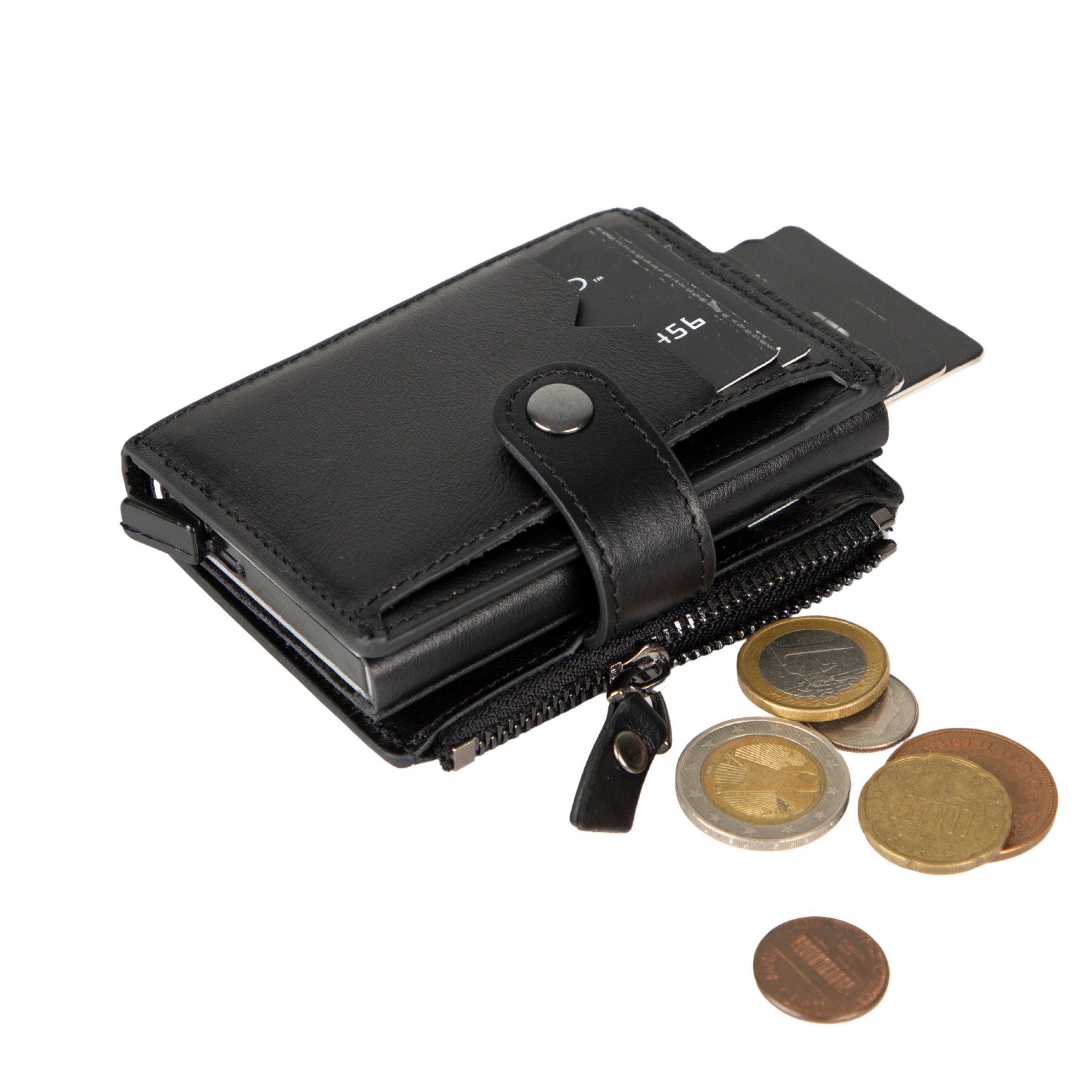 Echtleder Geldbörse mit Meschanismus Brieftasche mit RFID-Schutz Portemonnaie mit integriertem Kartenetui, Münzfach, Geldscheinfach