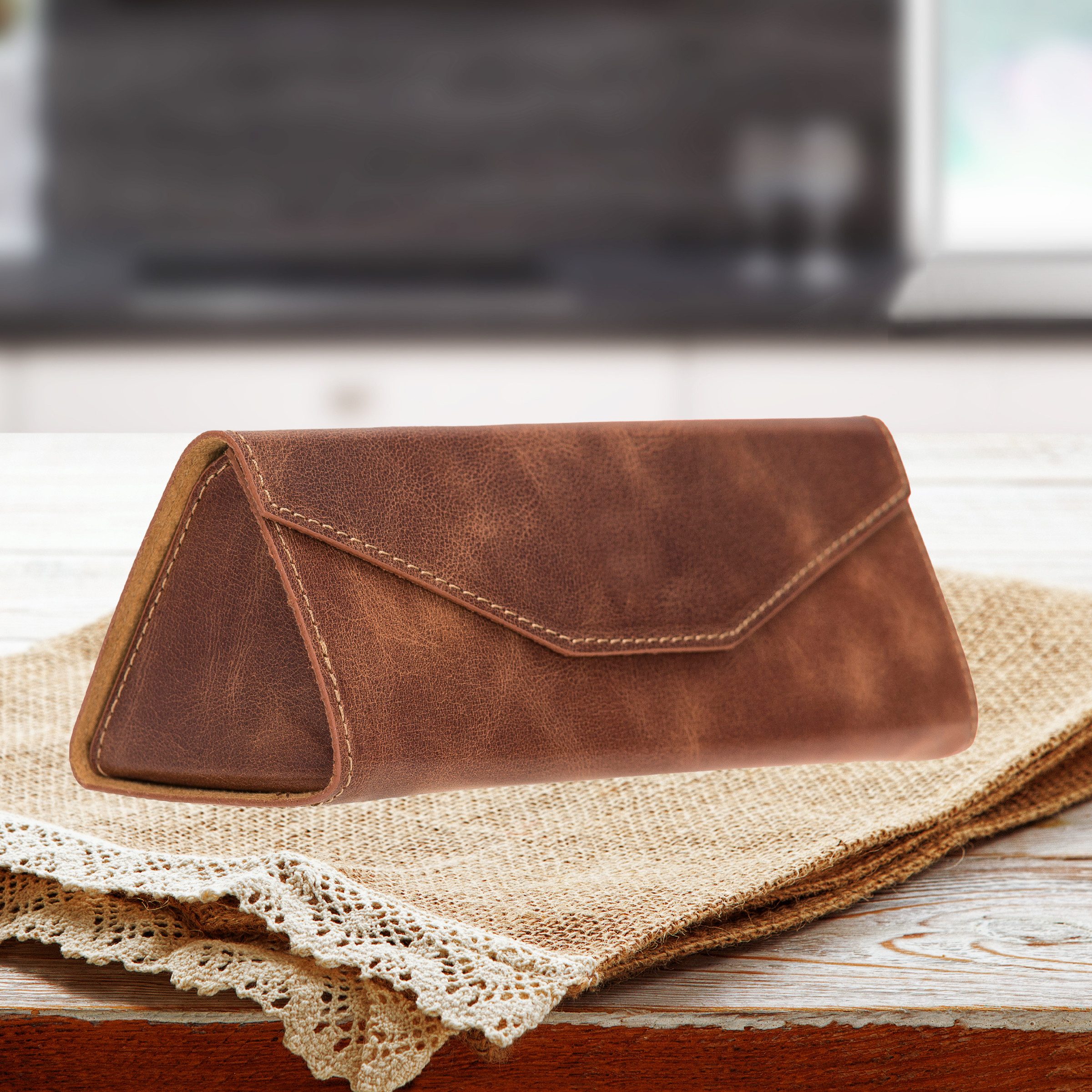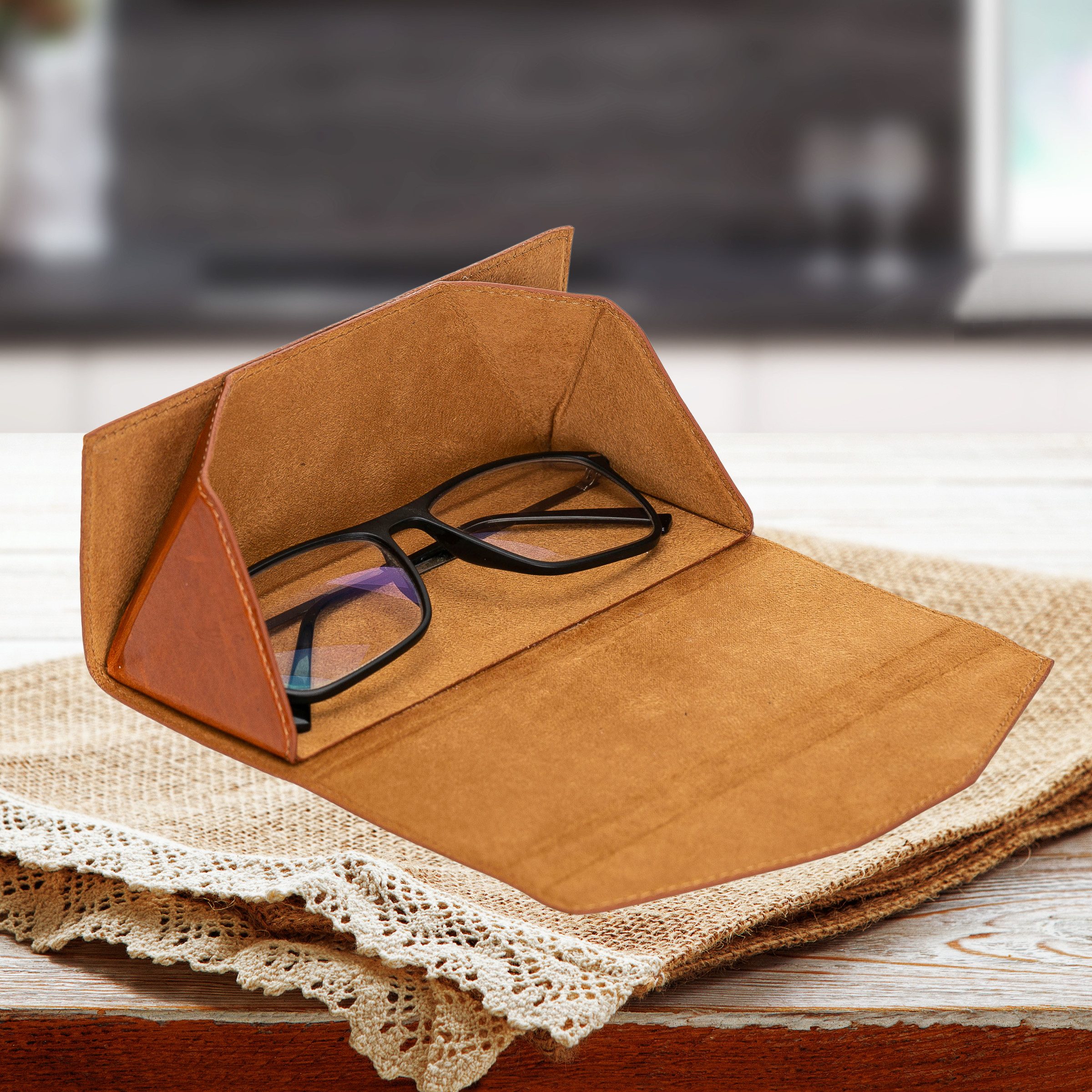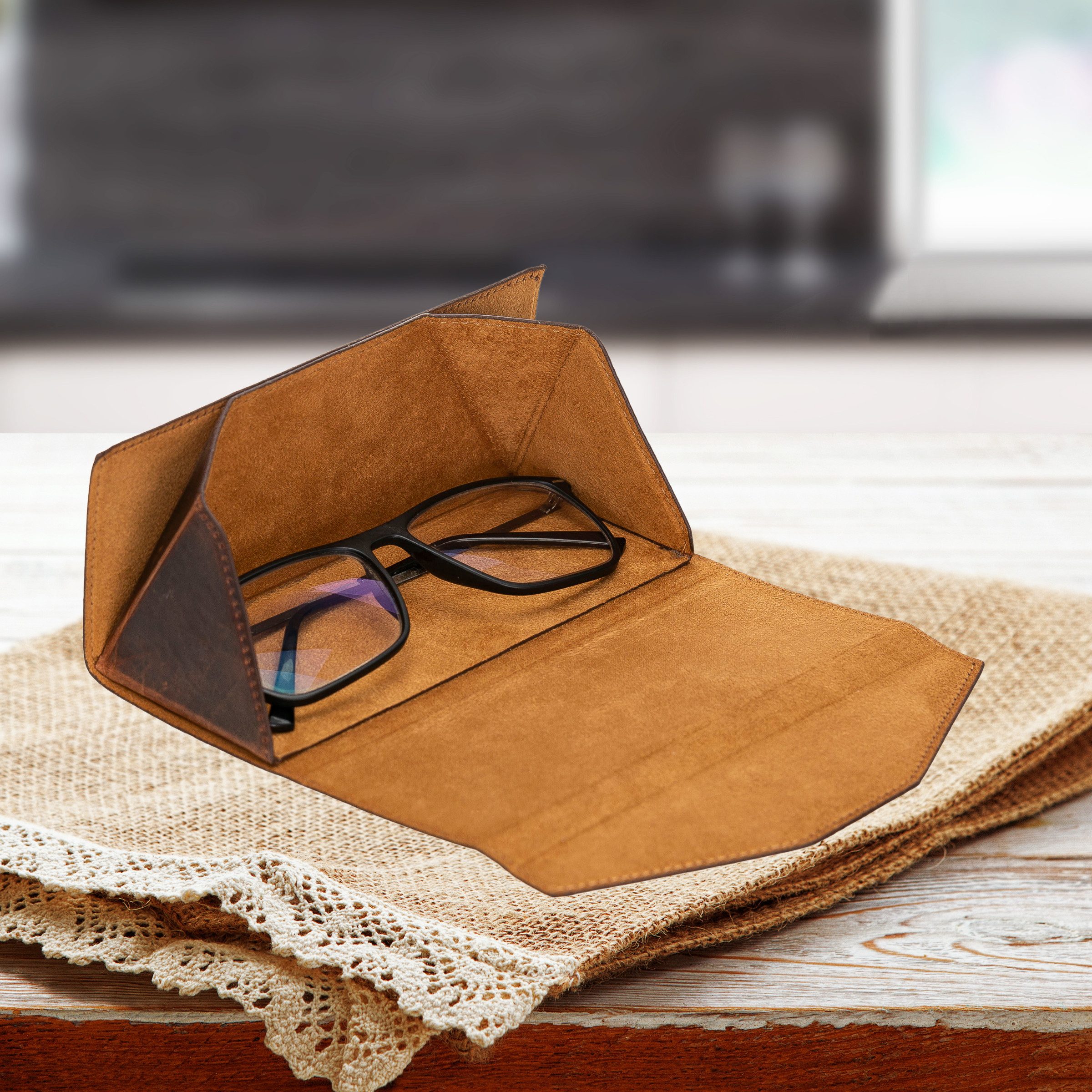 Dieses Brillenetui besteht aus hochwertigem Ledermaterial und verfügt über eine mit Wildleder gefütterte Innenseite, um Ihre Brille vor Kratzern zu schützen.