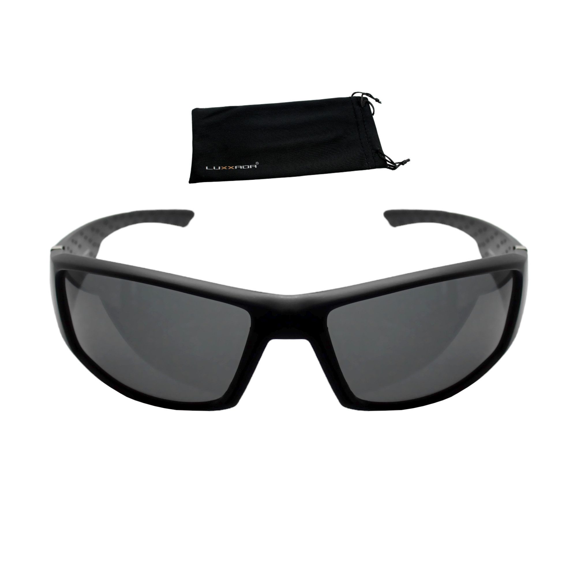 eine Bikerbrille und auch Raverbrille Festivalbrille Clubbing Brille Schwarz mit UV400 Gläser in Polarisiert Getönt mit Brillenbeutel