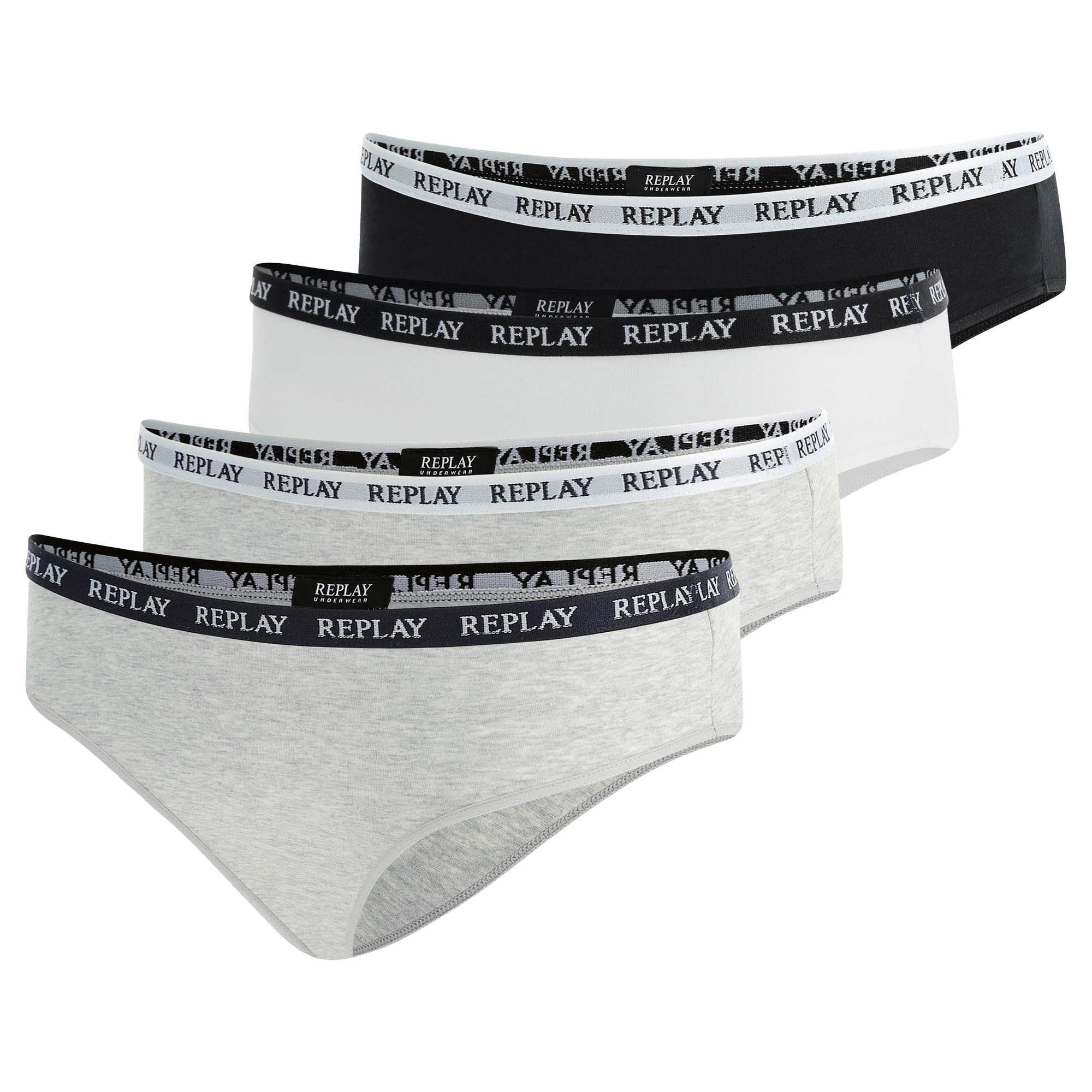 REPLAY Damen Slips im 4er Pack. Einfarbige Basic Slips mit bequemen Logobund. Weiche Materialmischung für hohen Tragekomfort.