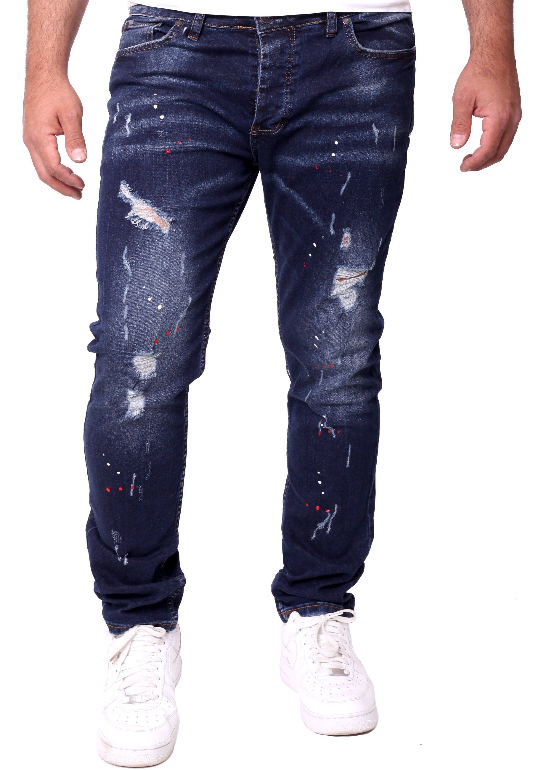 Reslad Jeans-Herren Stretch Denim Hose Used Destroyed Vintage Farbtupfer Farbklecks Color-Splashes Style für Männer RS-2101