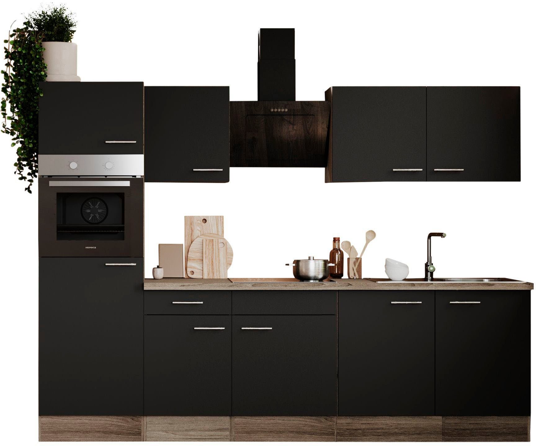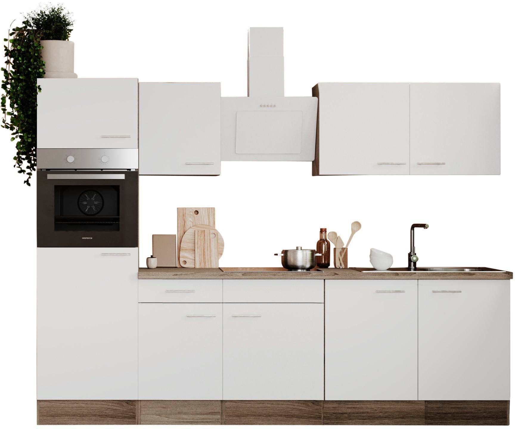 Ausstattung | Durchgehende Arbeitsplatte Seitenverkehrt stellbar Sockelhöhe nicht verstellbar inkl. Edelstahl-Einbauspüle, mit Abtropffläche mit E-Geräten |