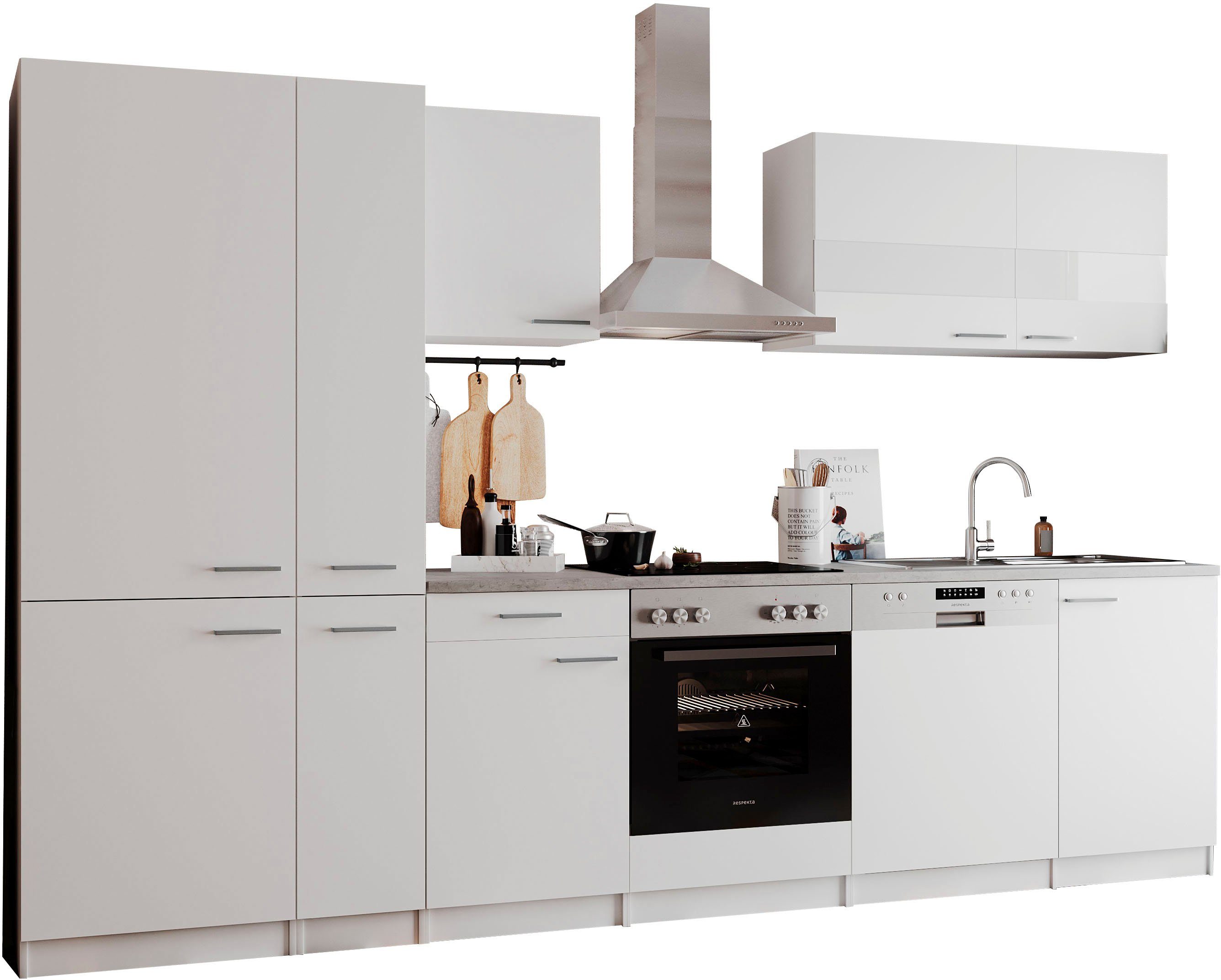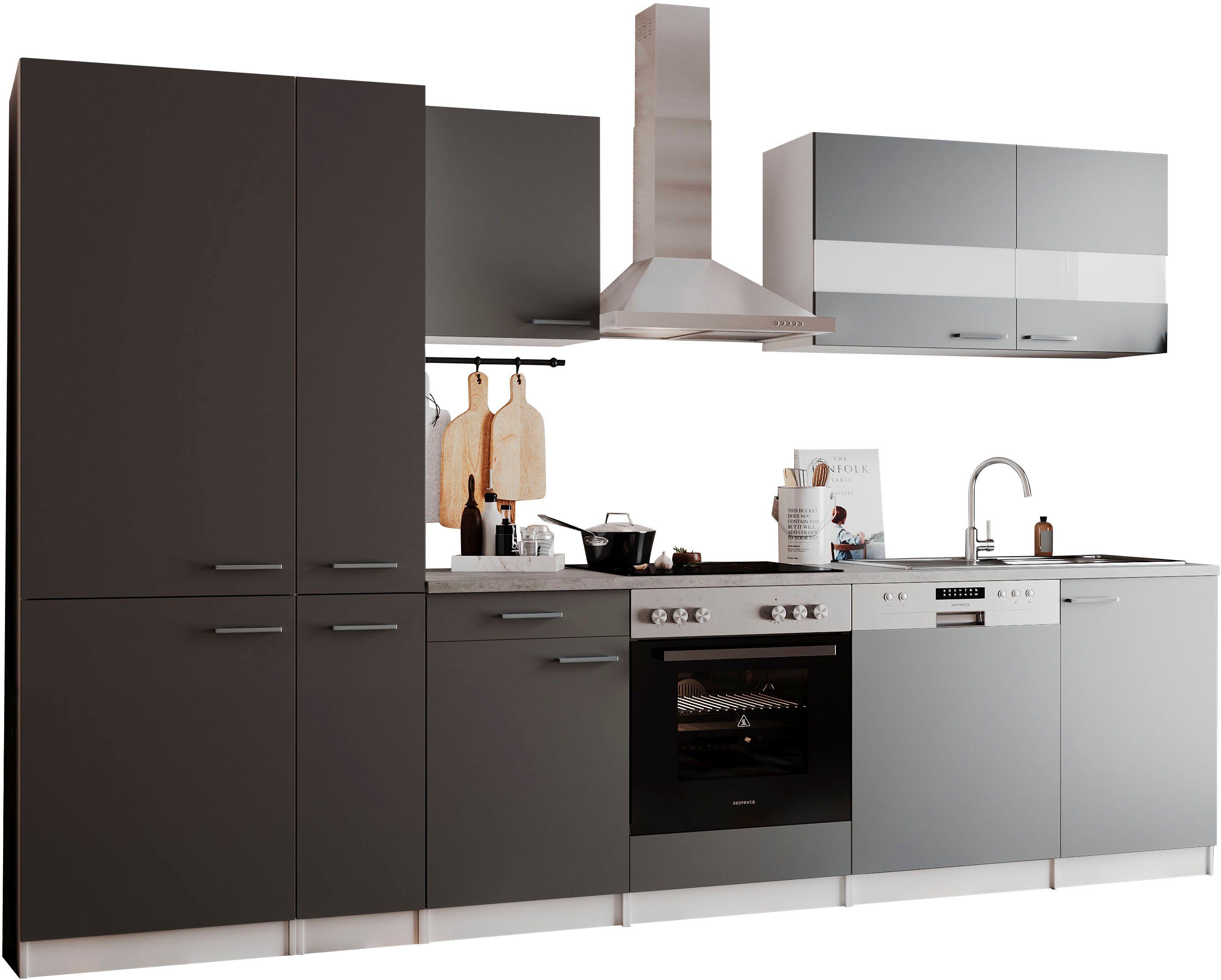 Ausstattung | Durchgehende Arbeitsplatte Schubkästen und Türen mit Soft-Close-Funktion Seitenverkehrt stellbar Sockelhöhe nicht verstellbar inkl. Edelstahl-Einbauspüle, mit Abtropffläche |