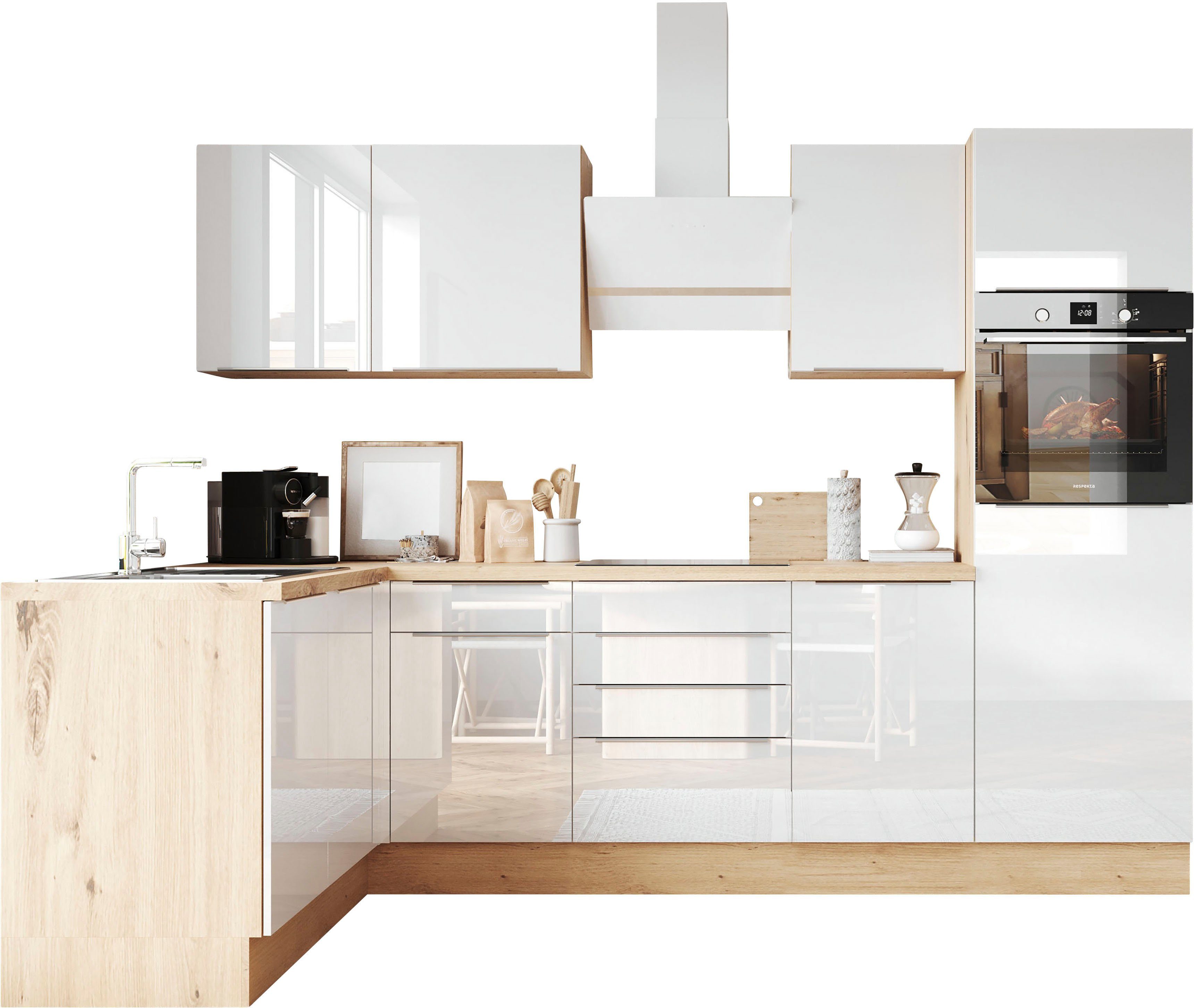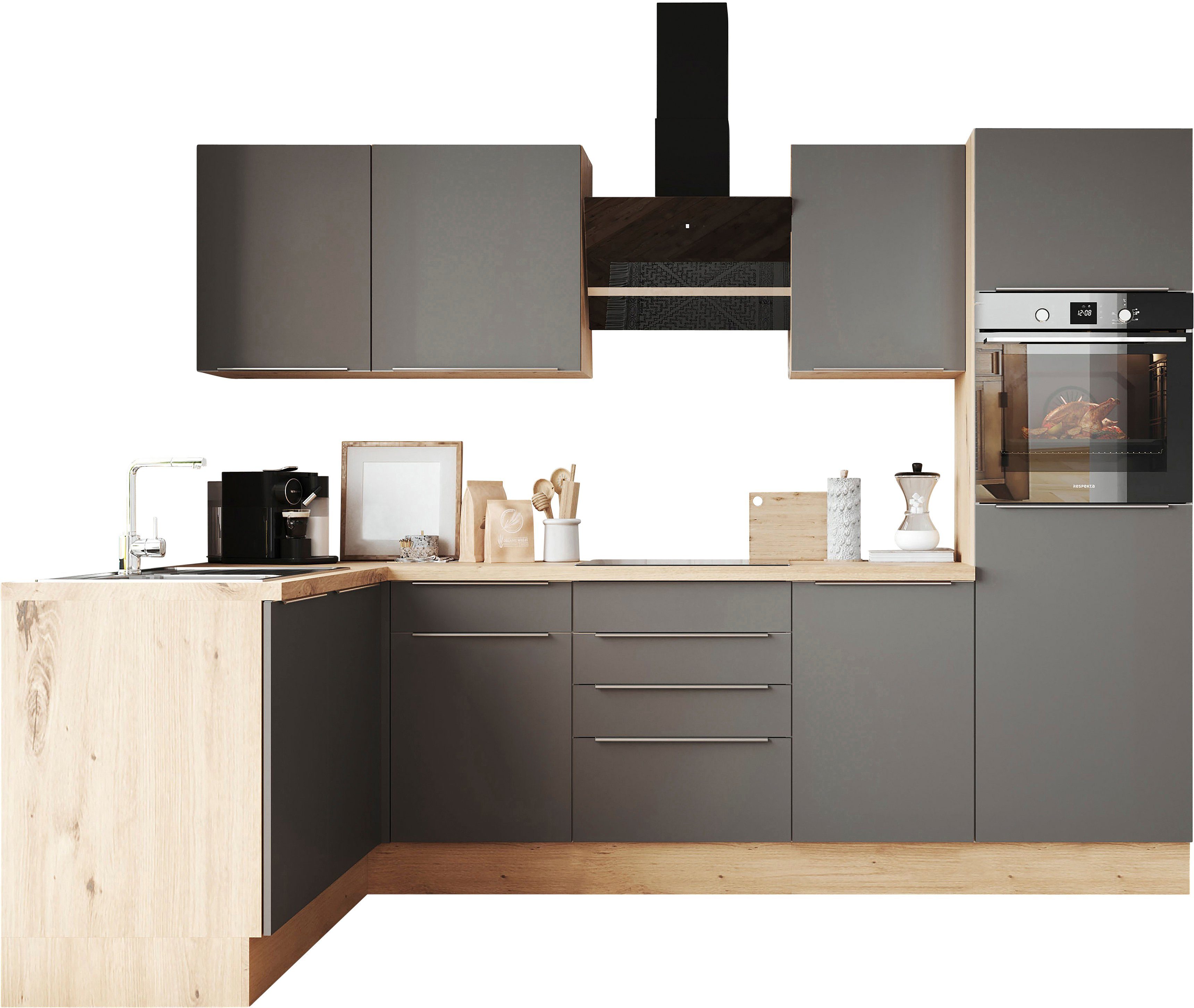Ausstattung | Griffleiste Höhenverstellbare Füße Schubkästen und Türen mit Soft-Close-Funktion Türen wahlweise rechts/links montierbar inkl. Edelstahl-Auflagespüle, mit Abtropffläche |