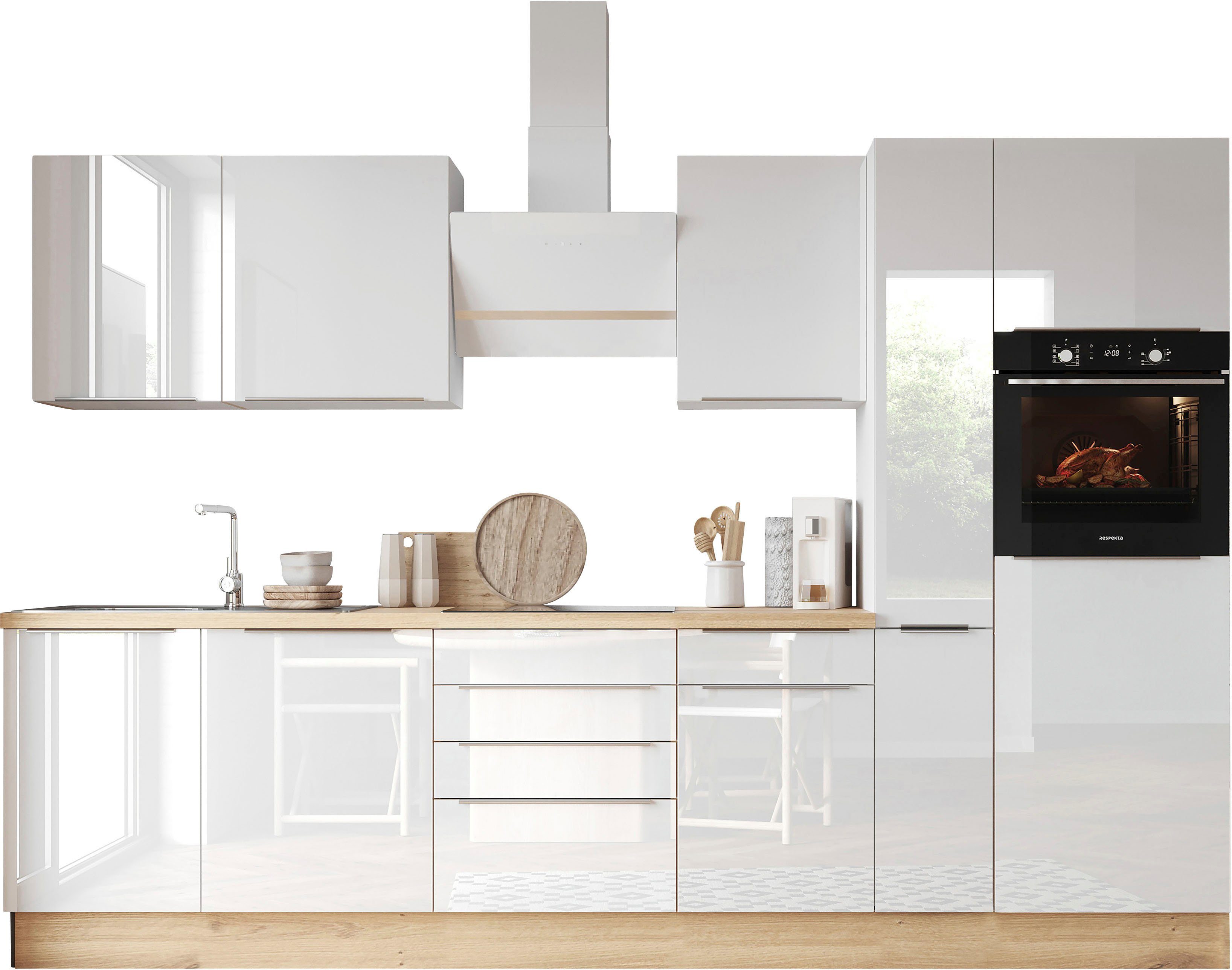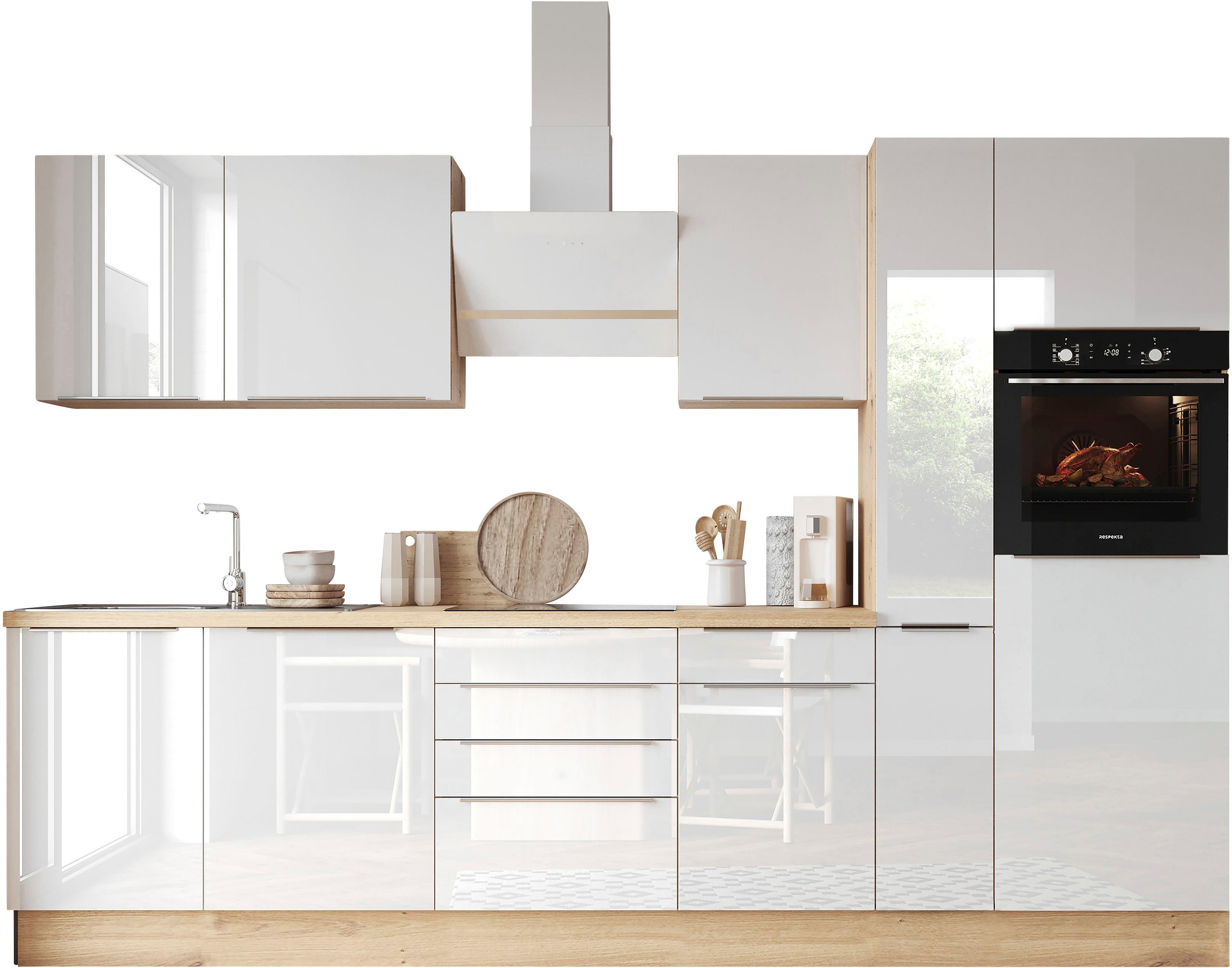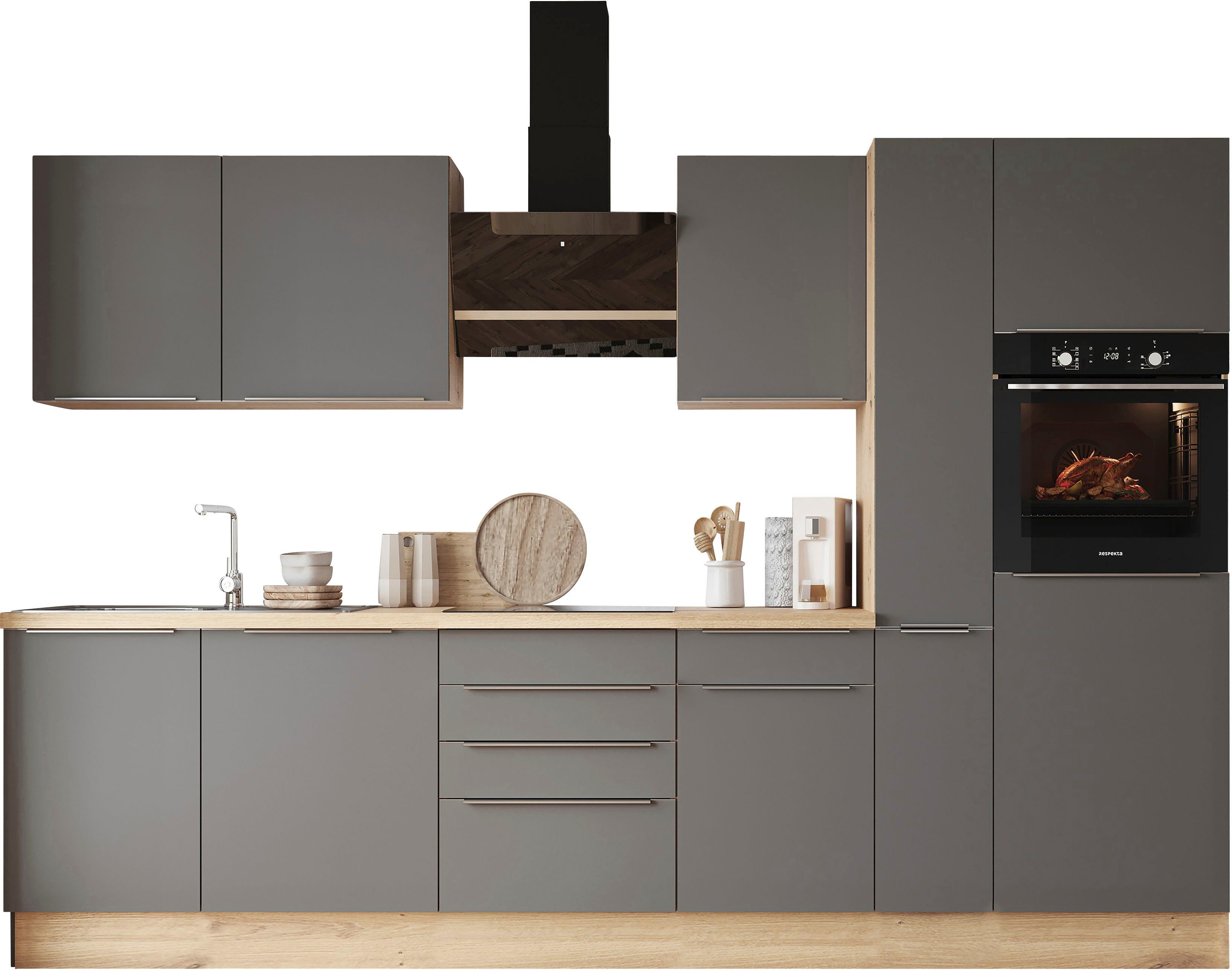 Ausstattung | Griffleiste Höhenverstellbare Füße Schubkästen und Türen mit Soft-Close-Funktion Türen wahlweise rechts/links montierbar inkl. Edelstahl-Auflagespüle, mit Abtropffläche |