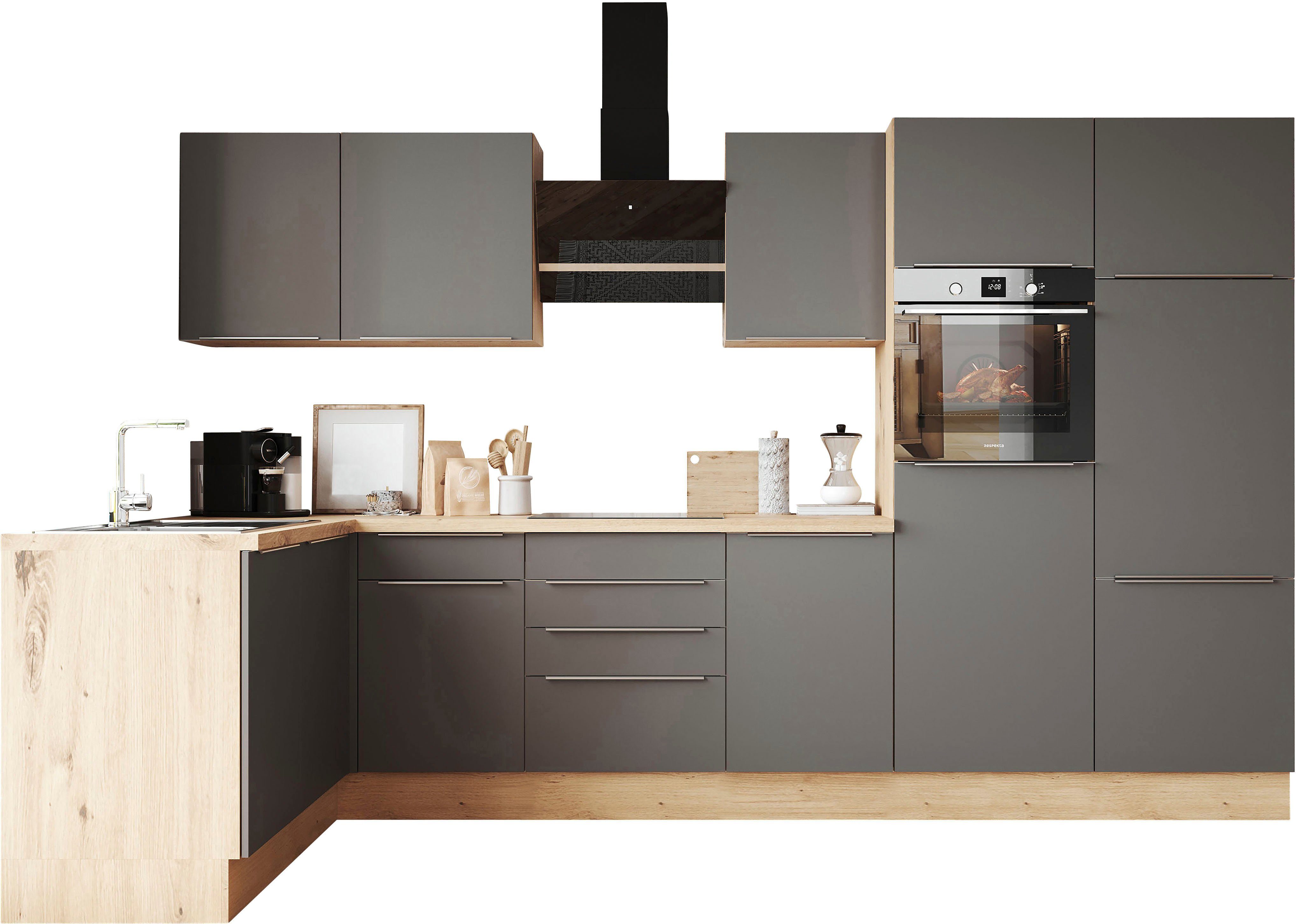 Ausstattung | Griffleiste Höhenverstellbare Füße Schubkästen und Türen mit Soft-Close-Funktion Türen wahlweise rechts/links montierbar inkl. Edelstahl-Auflagespüle, mit Abtropffläche |