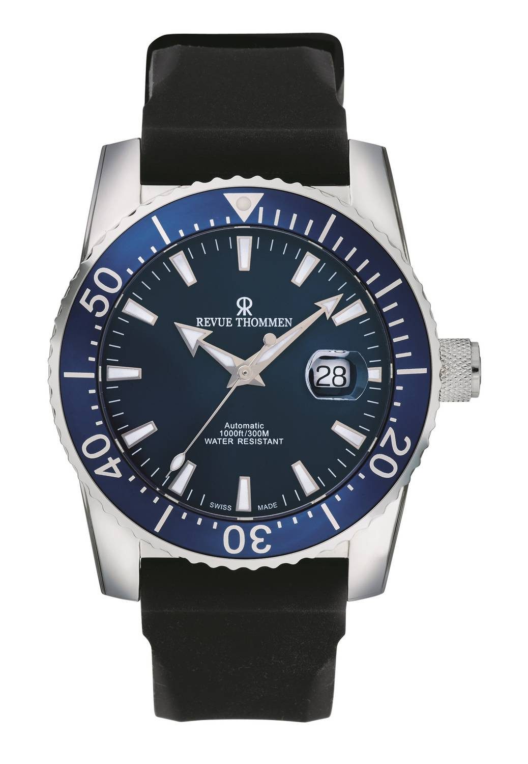Revue Thommen Armbanduhr Automatik Werk, Gehäuse Ø 46 mm , Edelstahl, Lünette blau, Sapphire Crystal, Datum, Kautschukband