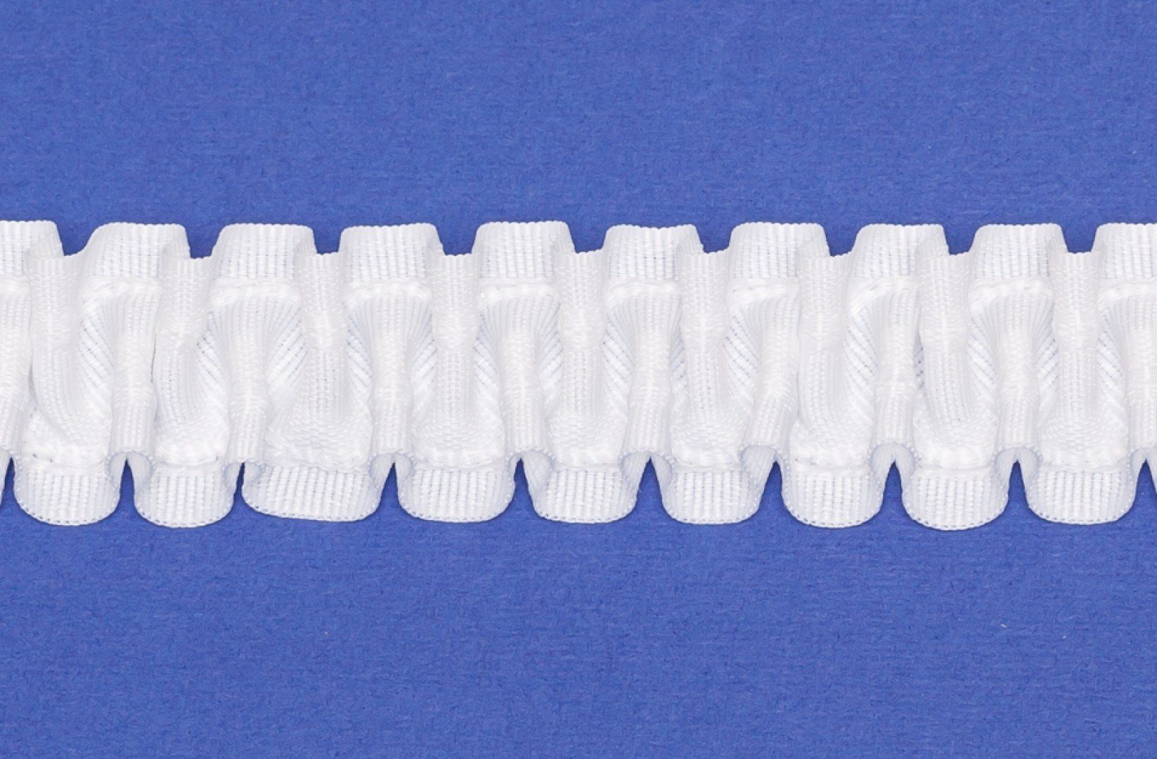 Smokfaltenband Breite: 29 mm Farbe: weiß Stoffverhältnis: Variabel Rapport : 34 mm Faltenabstand: Variabel Taschenreihen: 1 Zugschnüre: 2 Kategorie: Smokfalten Material: Polyester Verkaufseinheit: 5 Meter