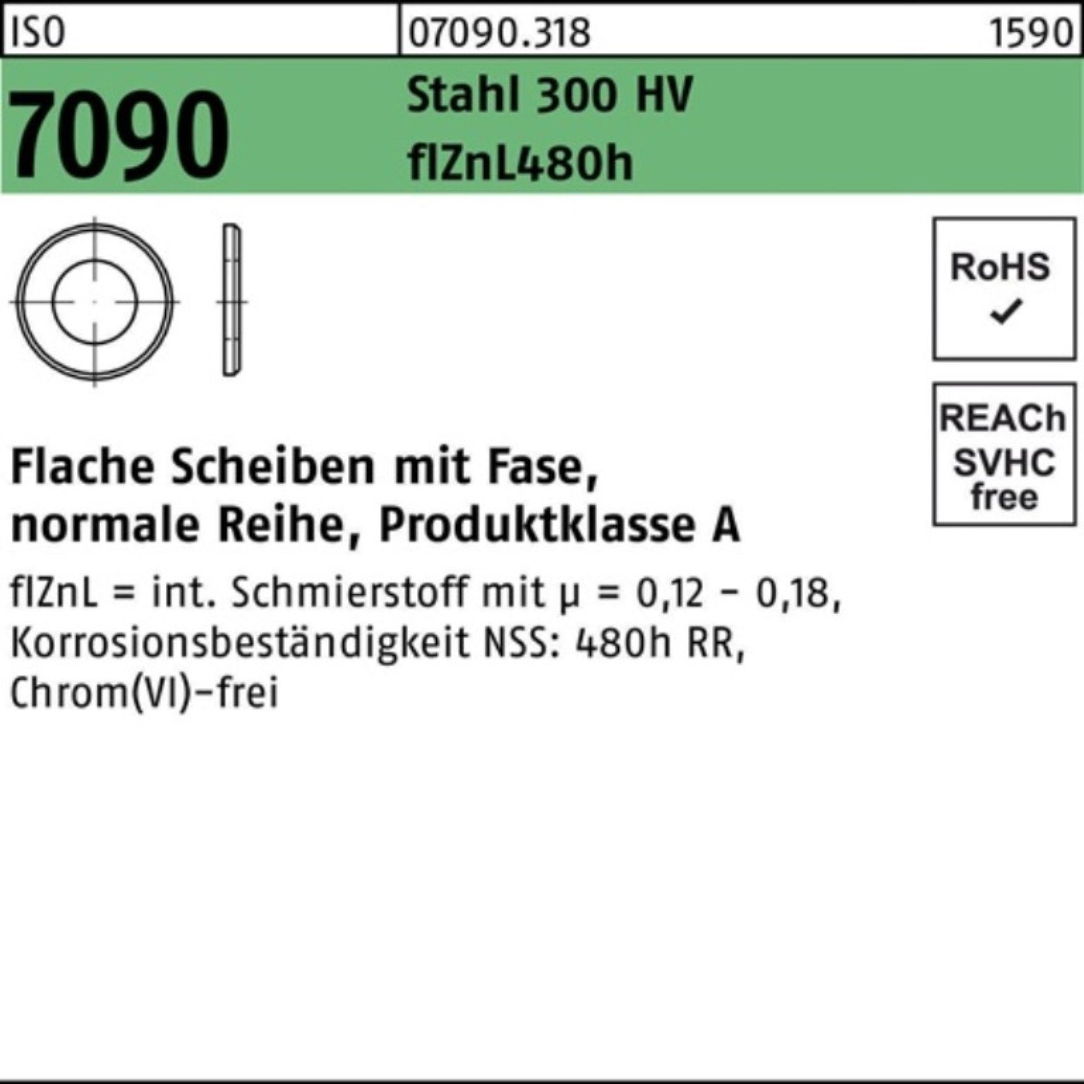 Unterlegscheibe ISO 7090 m.Fase 18 Stahl 300 HV zinklamellenb. 200 Stück ISO 7090 Stahl 300 HV flZnL 480h (zinklamellenbesch.) Flache Scheiben mit Fase · normale Reihe · Produktklasse A - Abmessung: 18 VE=S (200 Stück) Впередe technische Eigenschaften: · Durchmesser: 18mm · Form: Ohne Formfangabe · Gruppencode: 07090.318 · Nor