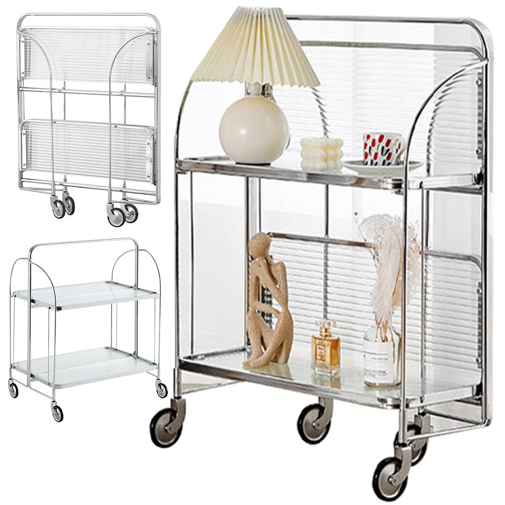 Praktisch, stilvoll und sofort einsatzbereit – der klappbare Edelstahl-Servierwagen mit Glasablagen