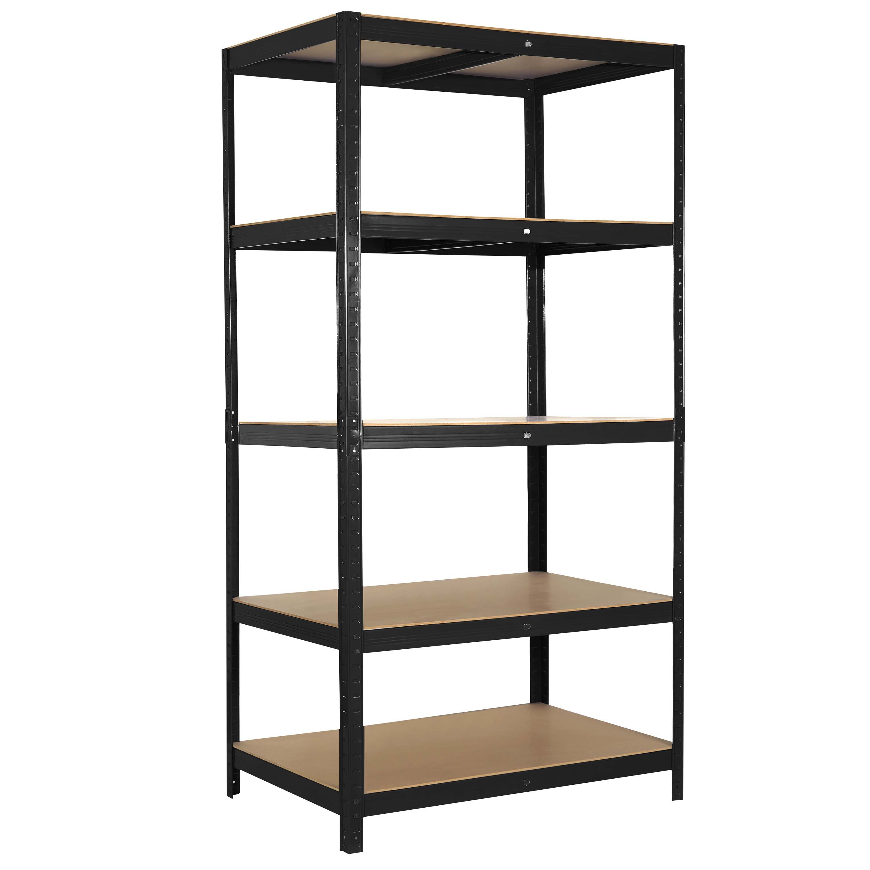 Schwerlastregal schwarz 5 Etagen verzinkte Regale, Farbe verzinkt, mit einer Mittelstütze pro Schicht, Stahl + MDF Platte, mit 8 Plastikfüßen ca. 180x 90x 60 cm