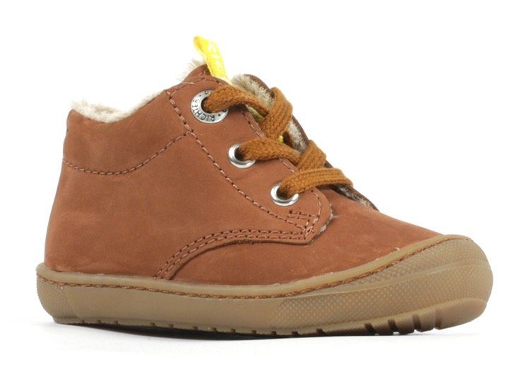 Mit dem Obermaterial aus Nubukleder sind die Schuhe widerstandsfähig und langlebig. Innen sind die Schuhe mit Futter versehen, das zusätzlich wärmt. Die herausnehmbare Warmfutter-Innensohle macht das Reinigen der Schuhe ganz einfach und erlaubt es, spezielle Einlagen oder orthopädische Sohlen zu benutzen. Diese Lauflernschuhe in mittlerer Weite sind ideal für normal breite Füße. Beim Kauf von Kinderschuhen ist ausreichend Platz vor den Zehen entscheidend – ideal sind je nach Alter 9 bis 15 Millimeter. So bleibt genügend Raum für das Abrollen des Fußes und gesundes Wachstum.