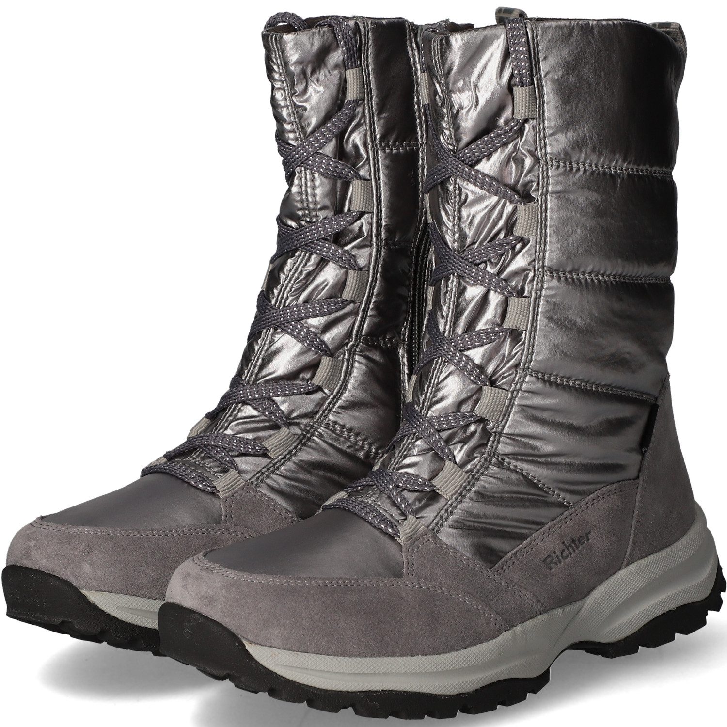 Richter Damen Stiefeletten/ Winterstiefeletten Grau Leder-Textil-Mix - Schnürung glitzernd und Reißverschluss mit Klettverschlusssicherung - Ziernähte - zum Teil metallische Optik - Warmfutter - gepolstertes Wechselfußbett - flexible, rutschhemmende Laufsohle mit Profil - sympatex (wasserfest, winddicht, atmungsaktiv)