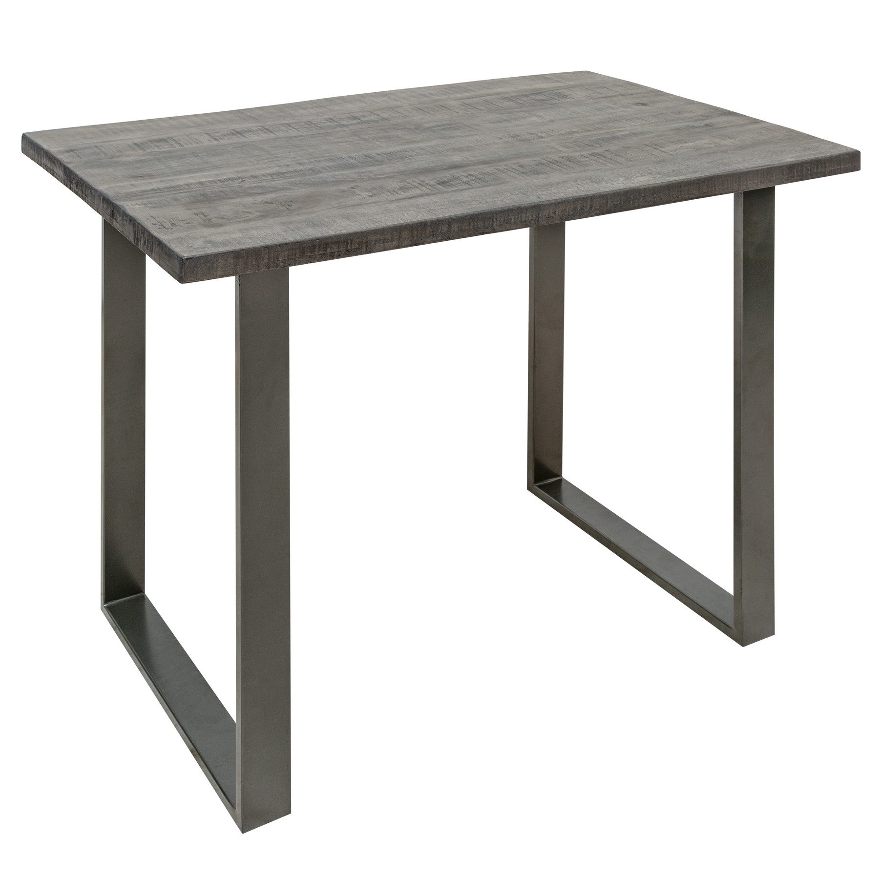 Sie denken bei Mangos an süße Früchte? Wir denken an außergewöhnliches Massivholz mit unverwechselbarer Optik. Unser Bartisch IRON CRAFT verbindet wunderschöne, individuelle Holzoptik mit dem rauen Flair von massiven Eisenkufen. Die Platte aus Mangoholz mit grauem Finish wurde in hochwertig verarbeiteter Bohlenoptik designt. Dadurch wirken die leicht abgerundeten Bohlen gemeinsam als einzigartige Tischplatte mit tollen, haptischen Eigenschaften und die einzigartige Struktur des Holzes kommt besonders toll zur Geltung. Zusammen mit den Eisenkufen entsteht so ein kantiges Industrial Design, das in jedem Esszimmer zu einem Eyecatcher wird.