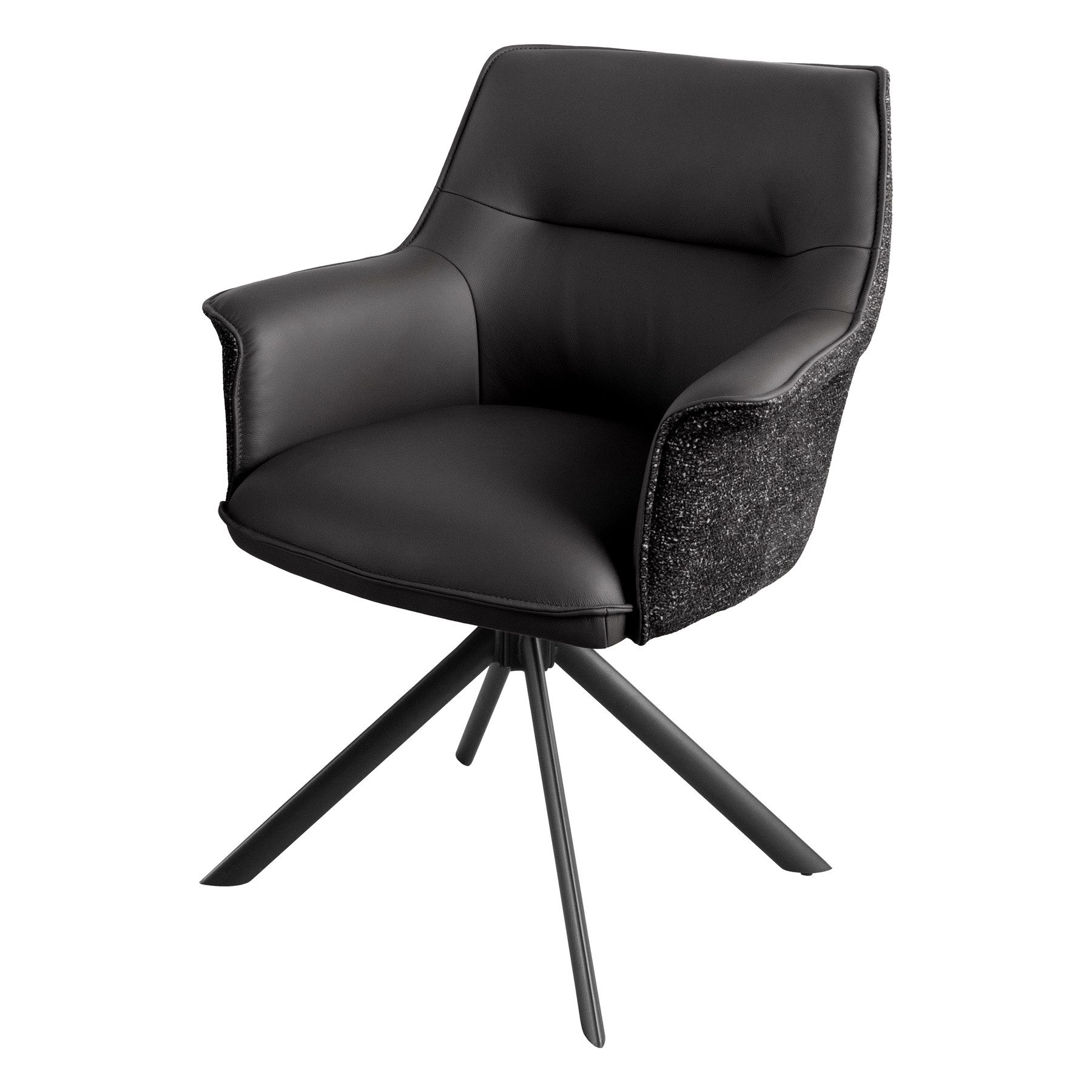 Der stilvolle Drehstuhl LE GRAND vereint edle Materialien, hohen Sitzkomfort und durchdachte Funktionalität. Mit seiner 180° Drehfunktion sorgt er für maximale Bewegungsfreiheit und kehrt nach dem Aufstehen elegant in seine Ursprungsposition zurück. Die bequeme Sitzschale kombiniert luxuriöses schwarzes Echtleder auf der Innenseite mit einem robusten schwarzen Strukturstoff außen – eine harmonische Mischung aus Eleganz und Langlebigkeit.
