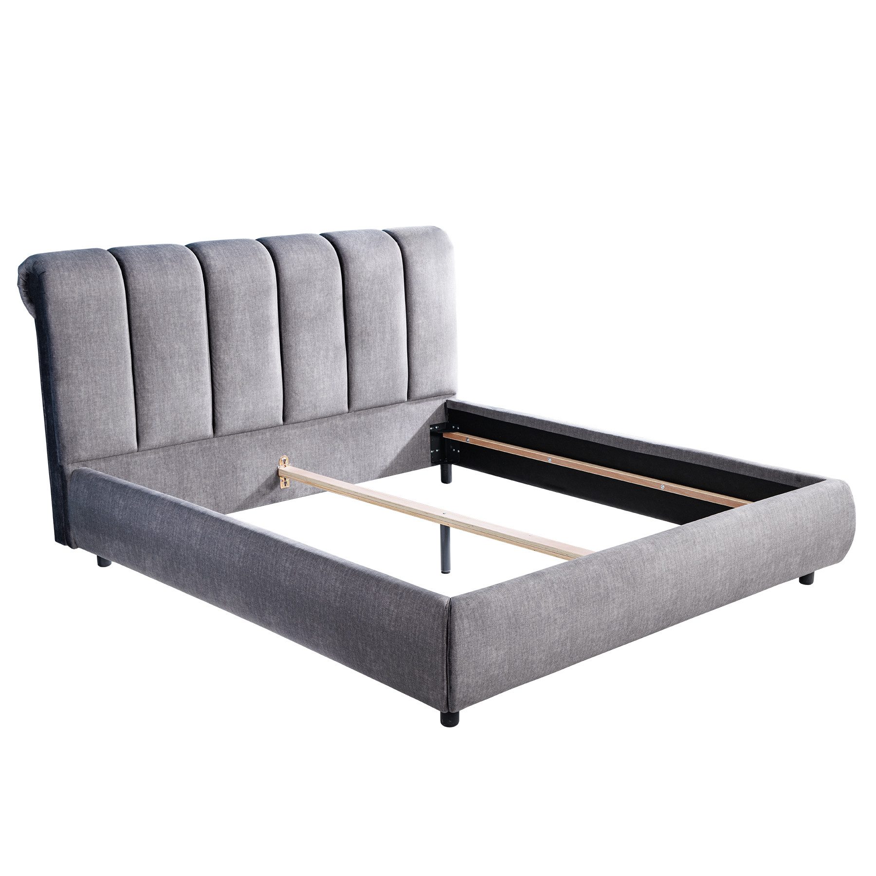 Der graue Stoffbezug aus strukturiertem Samt verleiht dem Bett zusätzliche Eleganz und ist gleichzeitig besonders pflegeleicht. Ob für Dein Schlafzimmer oder den Gästebereich – das Polsterbett wird immer für einen erholsamen Schlaf sorgen. Das Bett verfügt über einen stabilen Mittelbalken, sodass Du auch zwei Lattenroste nebeneinander platzieren kannst. Unser Interior-Tipp: Kombiniere das Doppelbett mit einem kuscheligen Hochflor-Teppich und kreiere ein gemütliches Ambiente!
