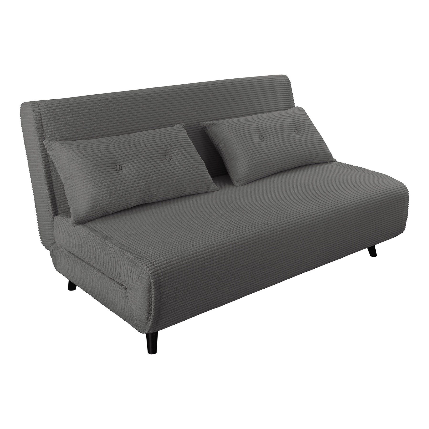 Der große Schlafsessel SMART MULTIFUNCTION überzeugt mit klarer Formensprache, hoher Funktionalität und einem zeitlosen Retro-Look. Der weiche Cordbezug in stilvollem Grau sorgt für eine besonders angenehme Haptik und eine wohnliche Ausstrahlung. Die mitgelieferten Zierkissen unterstreichen den gemütlichen Charakter des Sessels und bieten zusätzlichen Komfort. Die schwarz lackierten Holzfüße aus Kiefernholz verleihen dem Design einen edlen Akzent und sind mit praktischen Filzgleitern ausgestattet – perfekt für empfindliche Böden.
