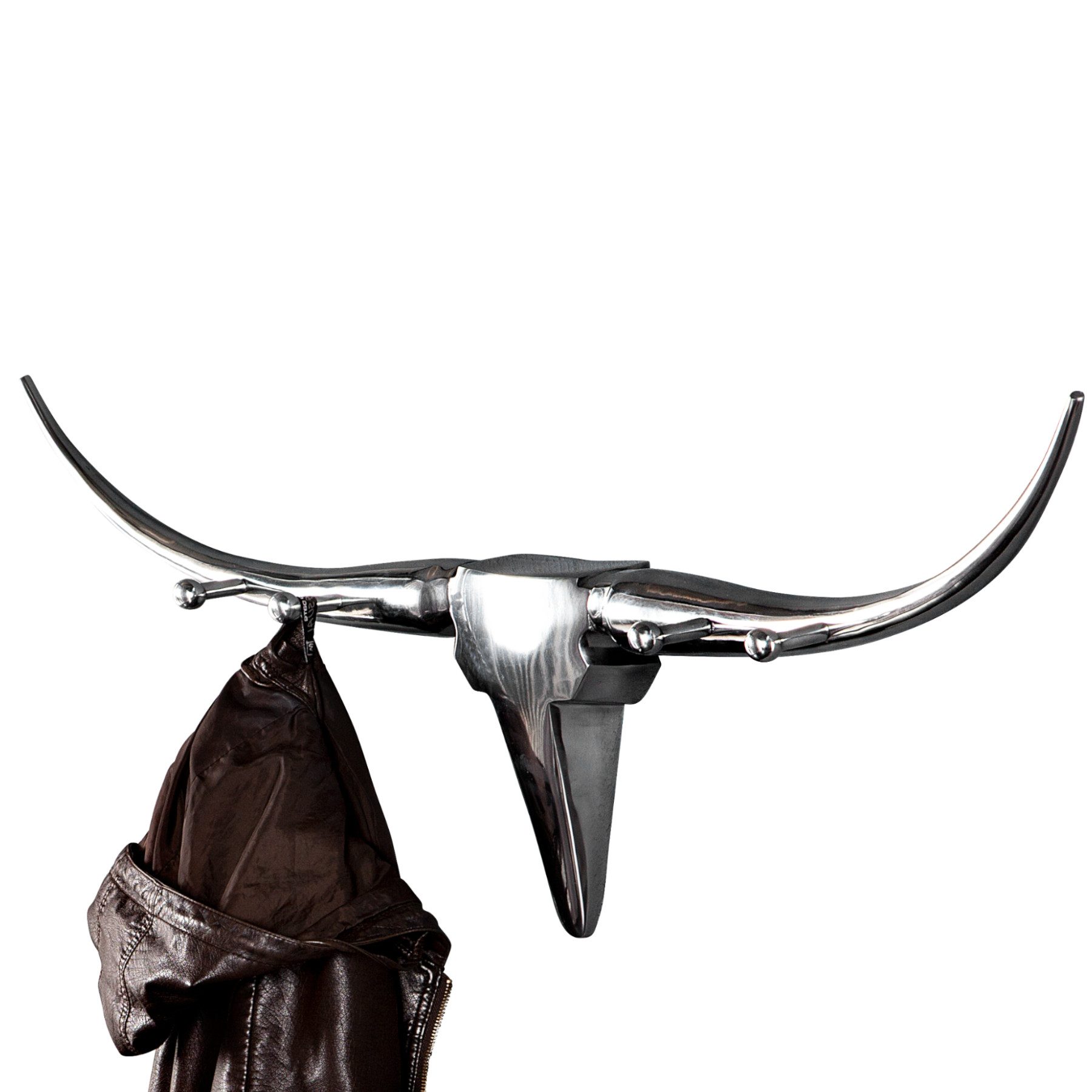 riess-ambiente Wandgarderobe BULL 100cm silber, Metall · Stierkopf · Modern Design · Garderobe · Wanddekoration