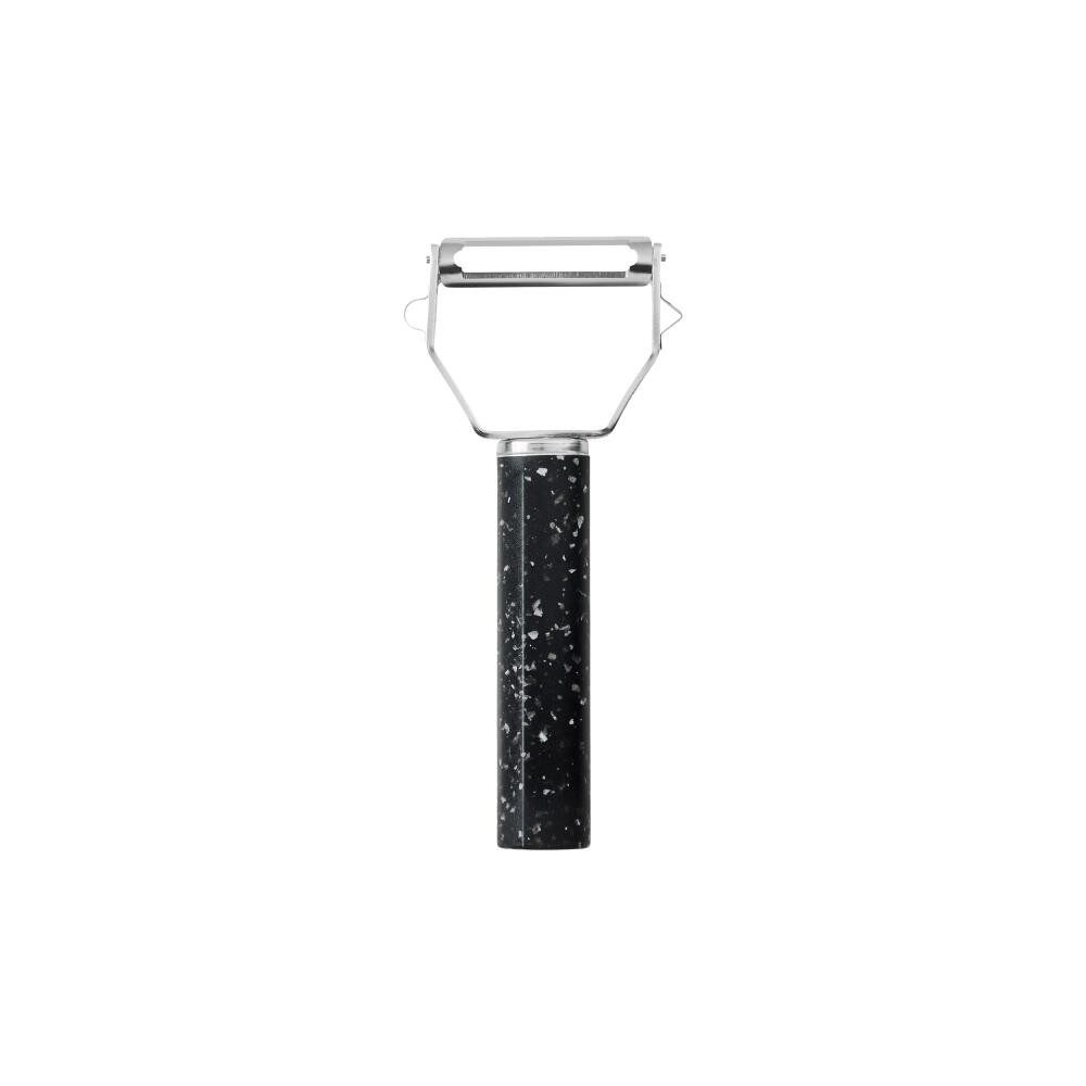 Y-Schäler der Serie REDO. Dieser Schäler aus Edelstahl hat eine flexible Klinge, die der Kontur des Gemüses folgt und somit für optimale Ergebnisse sorgt. Besteht zu 98 % aus recyceltem Kunststoff, der aus gebrauchten Verpackungen hergestellt wird und dem Y-Schäler einen einzigartigen rauen Ausdruck verleiht. Der Y-Schäler hat einen Stahlrahmen mit zwei unterschiedlich großen scharfen Haken auf jeder Seite, um Knospen und Keimansätze zu entfernen. Der Griff entspricht dem traditionellen japanischen Shinogi-Profil und liegt somit gut und kontrolliert in der Hand. Bei einem Shinogi-Griff hat der Schaft eine vertikale Kante, die dafür sorgt, dass der Griff gut in der Hand liegt und der Schäler sowohl von Rechts- als auch Linkshändern genutzt werden kann.