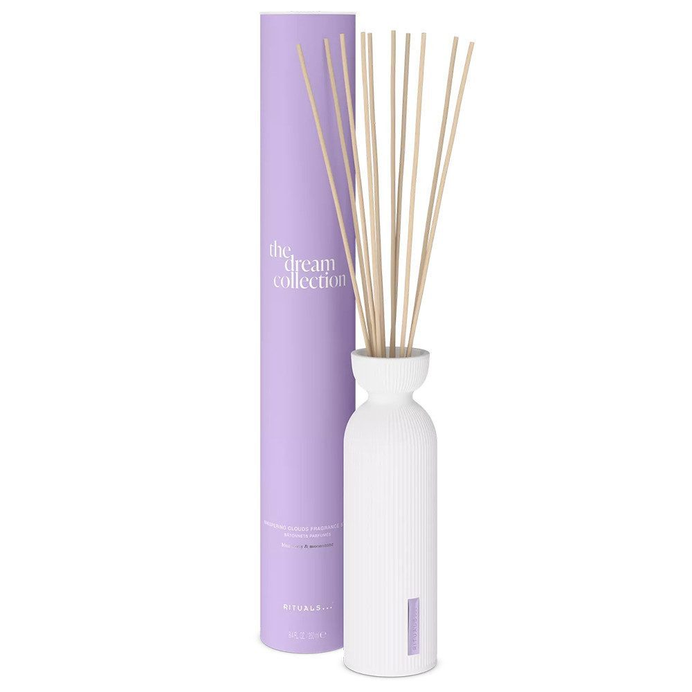 Die The Dream Collection Duftstäbchen von Rituals verströmen einen blumig-holzigen Duft mit zartem Jasmin, pudriger Iris, warmem Sandelholz und Moschus. Die limitierten Duftstäbchen halten bis zu drei Monate und sorgen für ein elegantes, entspannendes Ambiente in jedem Raum. Einfach in der Anwendung, ganz ohne Umdrehen – bei Bedarf können die Stäbchen für einen zusätzlichen Frischekick jederzeit gewendet werden.