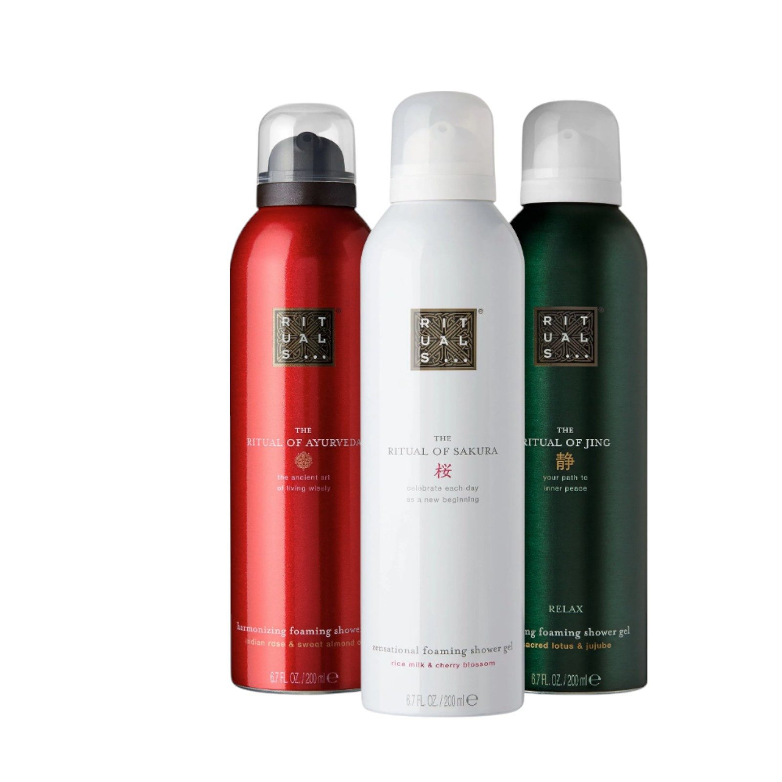 Inhaltsstoffe | The Ritual of Ayurveda Foaming Shower Gel Aqua/Water, Sodium Coco-Sulfate, Decyl Glucoside, Isopentane, Coco-Glucoside, Glycerin, PEG-120 Methyl Glucose Dioleate, Isopropyl Palmitate, Parfum/Fragrance, Isobutane, Rosa Damascena Flower Oil, Prunus Amygdalus Dulcis (Sweet Almond) Oil, Citric Acid, Sodium Benzoate, Guar Hydroxypropyltrimonium Chloride, Hexyl Cinnamal, Limonene, Linalool, Coumarin, Citronellol, Benzyl Benzoate. The Ritual of Jing Foaming Shower Gel Aqua/Water, Sodium Laureth Sulfate, Cocamidopropyl Betaine, Isopentane, Sorbitol, Parfum/Fragrance, Isopropyl Palmitate, Isobutane, PEG-120 Methyl Glucose Dioleate, Glycerin, Butylene Glycol, Nelumbo Nucifera (Lotus) Flower Extract, Ziziphus Jujuba (Jujube) Fruit Extract, Sodium Benzoate, Potassium Sorbate, Sodium Chloride, PEG-40 Hydrogenated Castor Oil, Citric Acid, Guar Hydroxypropyltrimonium Chloride, Tocopherol, Alpha-Isomethyl Ionone, Benzyl Salicylate, Hexyl Cinnamal, Linalool. The Ritual of Sakura Foaming Shower Gel Aqua/Water, Sodium Laureth Sulfate, Cocamidopropyl Betaine, Isopentane, Sorbitol, PEG-120 Methyl Glucose Dioleate, Isopropyl Palmitate, Parfum/Fragrance, Isobutane, Oryza Sativa (Rice) Extract, Prunus Cerasus (Bitter Cherry) Extract, Sodium Benzoate, Citric Acid, PEG-40 Hydrogenated Castor Oil, Butylene Glycol, Glycerin, Guar Hydroxypropyltrimonium Chloride, Potassium Sorbate, Sorbic Acid, Hexyl Cinnamal, Benzyl Salicylate, Linalool, Coumarin, Citronellol, Geraniol, Alpha-Isomethyl Ionone, Cinnamyl Alcohol. |