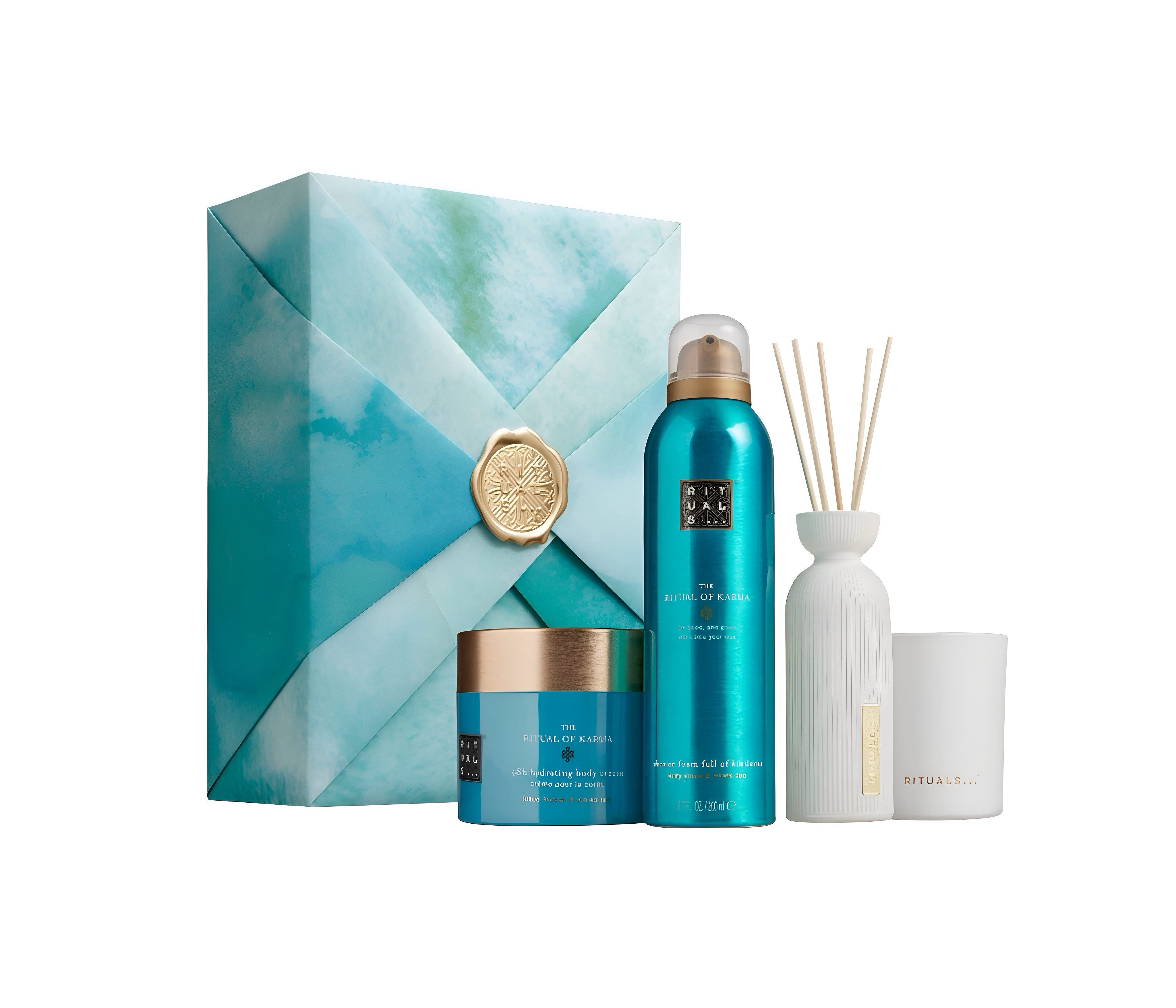 Lieferumfang | 1 × Foaming Shower Gel 200 ml 1 × Mini Fragrance Sticks 70 ml 1 × 48h Hydrating Body Cream 200 ml 1 × Duftkerze 140 g 1 × Geschenkbox im Origami-Design |