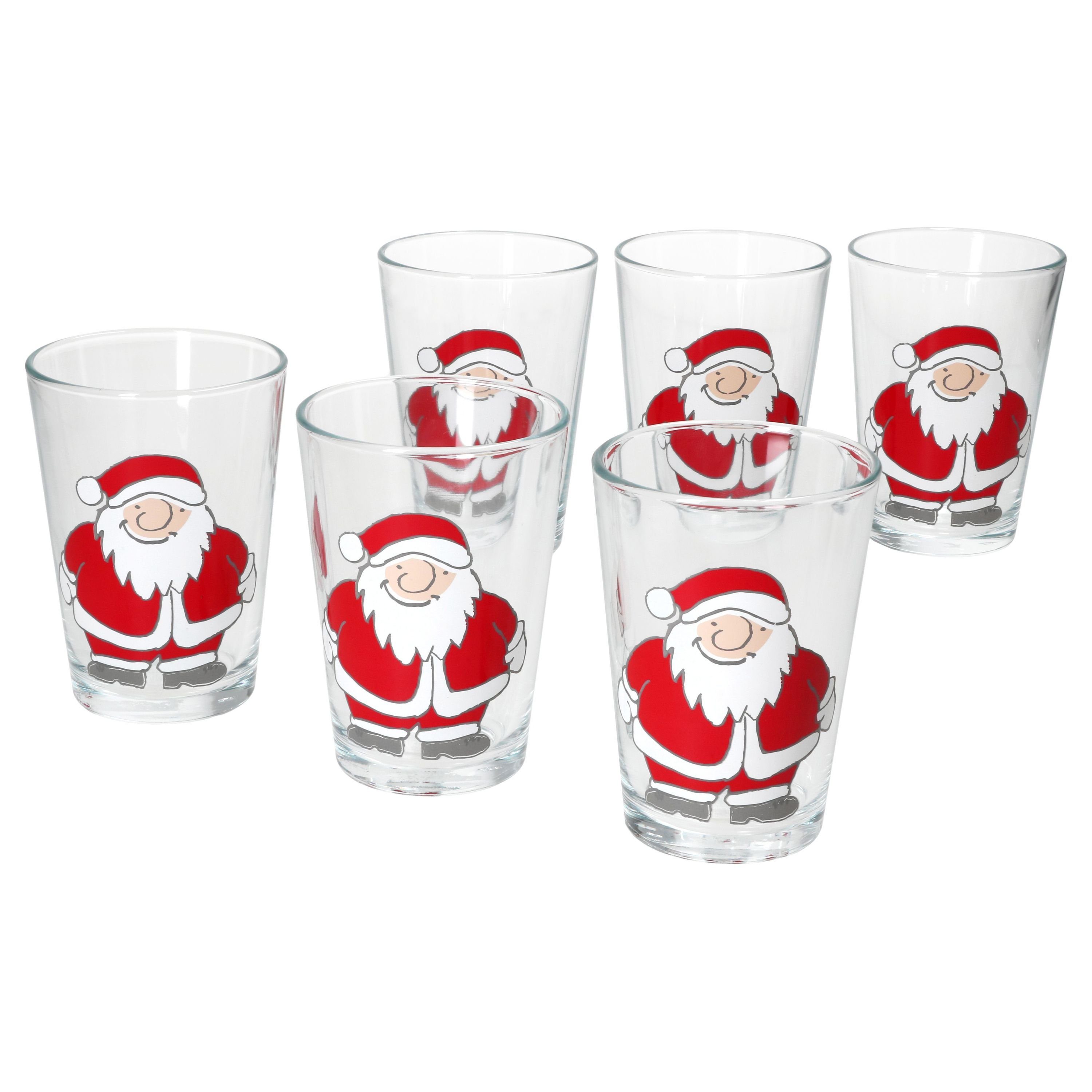Das Trinkglas ist aus Klarglas gefertigt und auf einer Seite mit einem schnuckeligen Weihnachtsmann versehen. Dieser trägt sein weihnachtliches Gewand mit roter Zipfelmütze und grinst Sie fröhlich durch seinen weißen Bart an. Die konischen Teegläser können zur platzsparenden Aufbewahrung ineinander gestapelt werden.