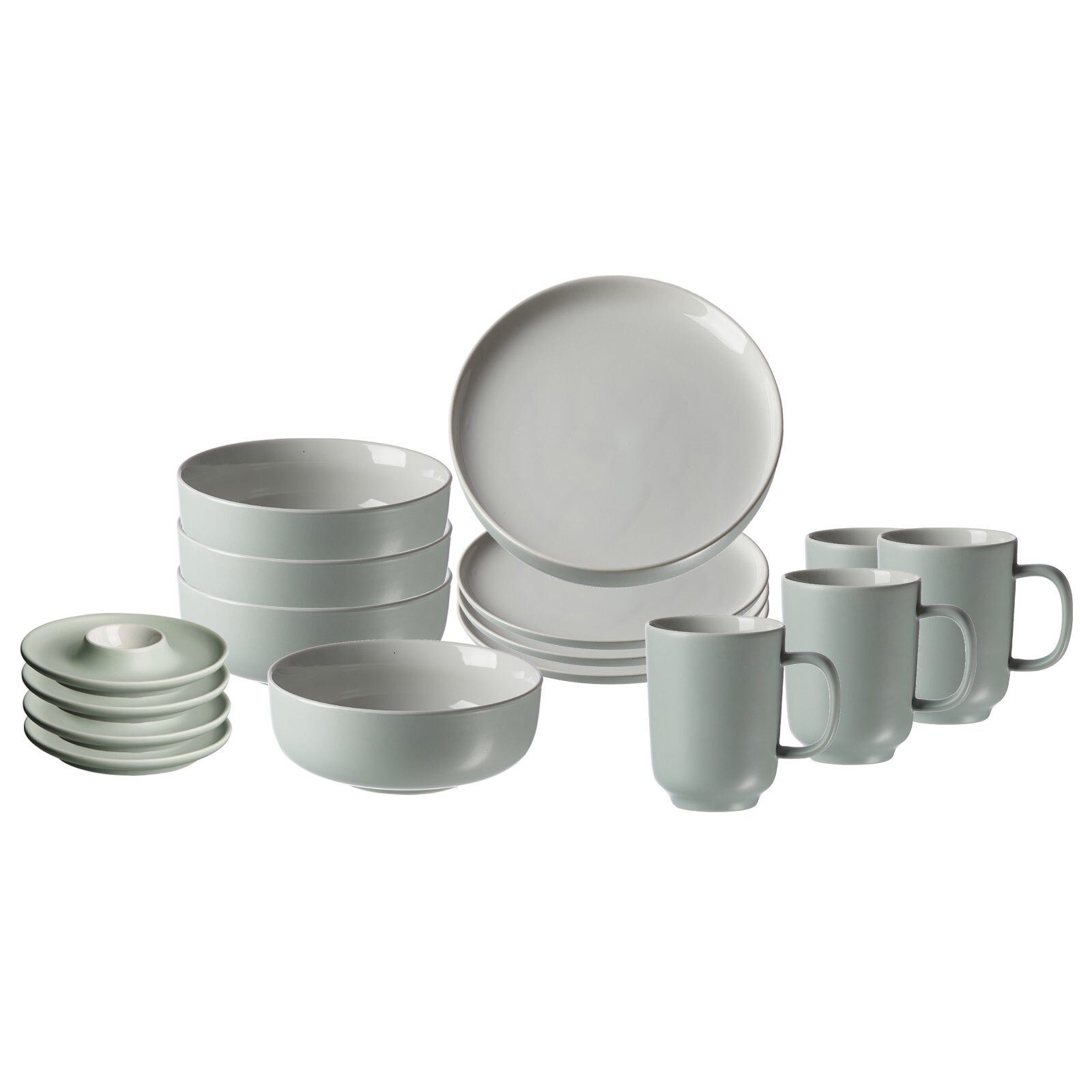 Lieferungumfang: 4x Kaffeebecher, 4x Müslischale, 4x Eiertellerr, 4x Frühstücksteller Merkmal: Ideal für den Alltag, spülmaschinengeeignet