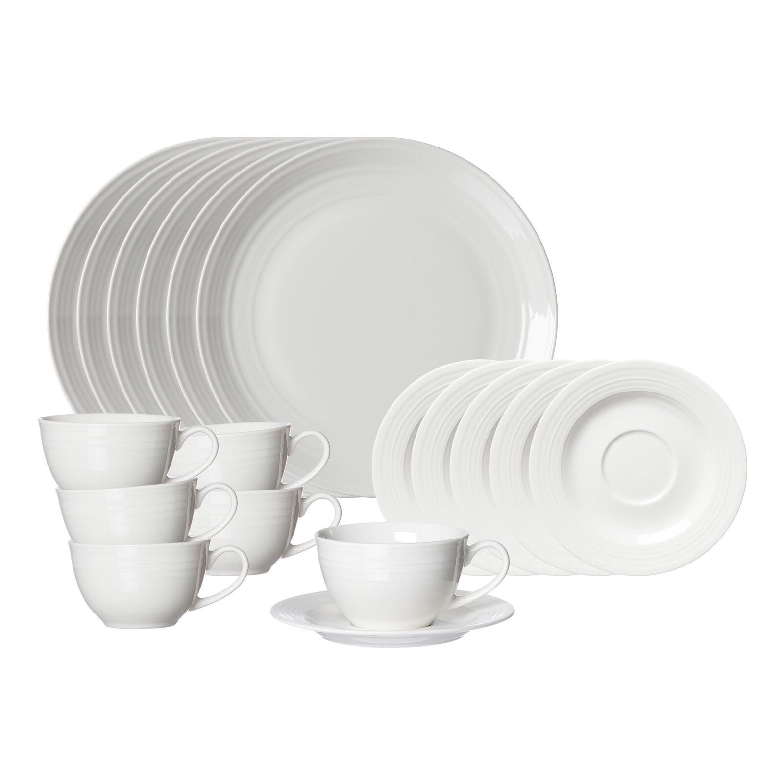 Das Set enthält: 6x Kaffeetasse 6x Untertasse 6x Dessert-/Frühstücksteller